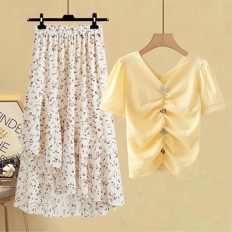 여성을위한 달콤한 기질 쉬폰 셔츠 투피스 슈트 2025 여름 칼라 화이트 탑 작은 신선한 꽃 스커트스토어 가기