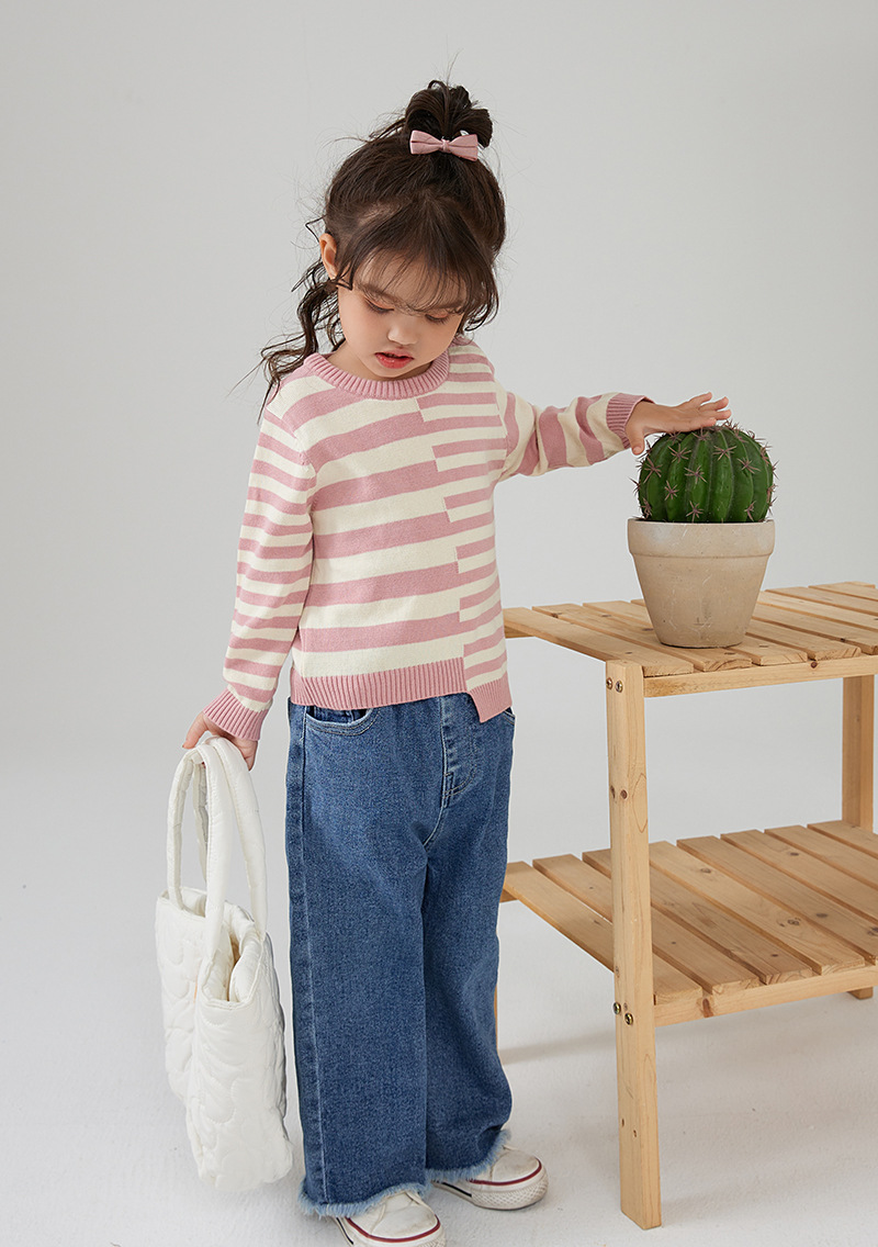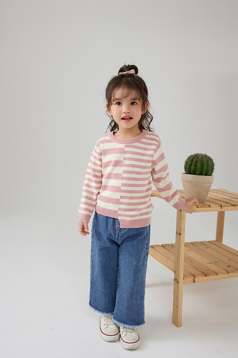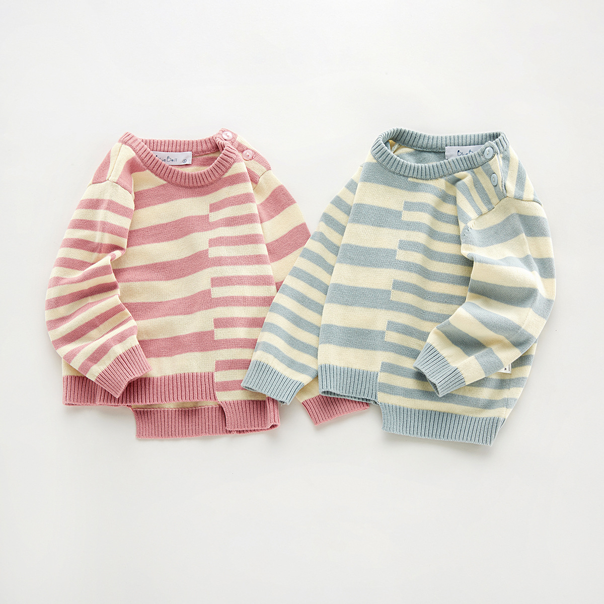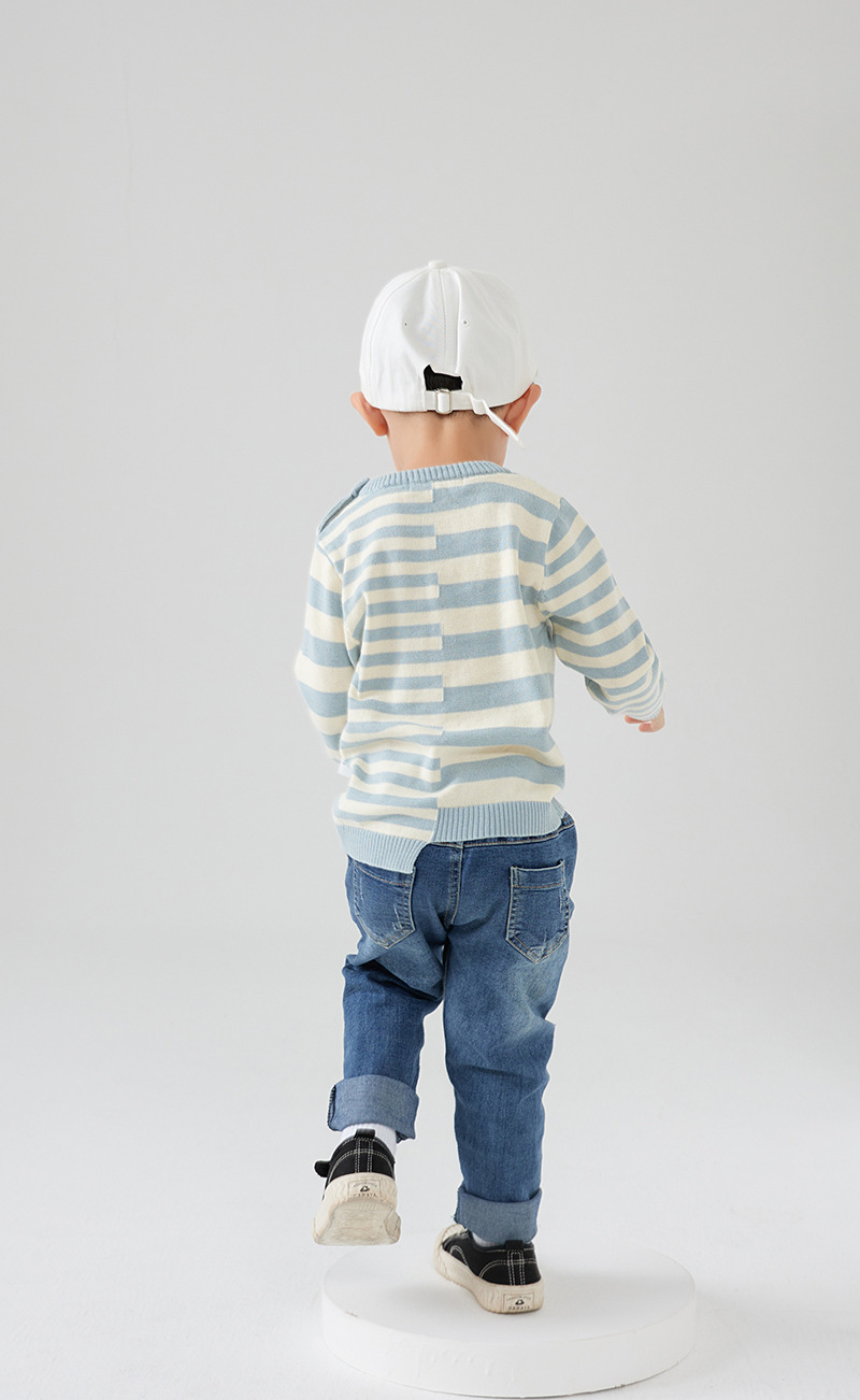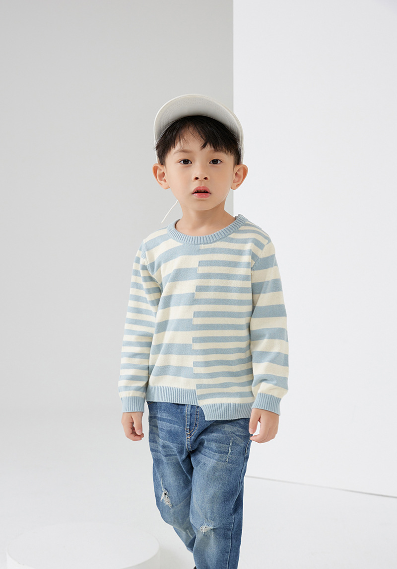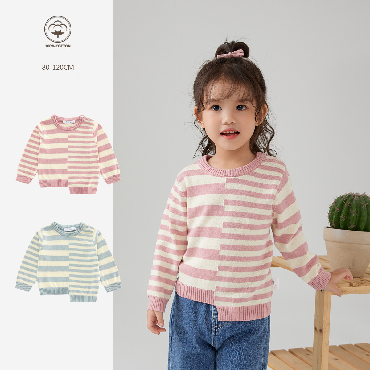 스팟 크로스보더 봄 여름 얇은 순면 스트라이프 아동용 스웨터 소년 소녀용 라운드 넥 풀오버 긴팔 카테고리 A 스웨터스토어 가기