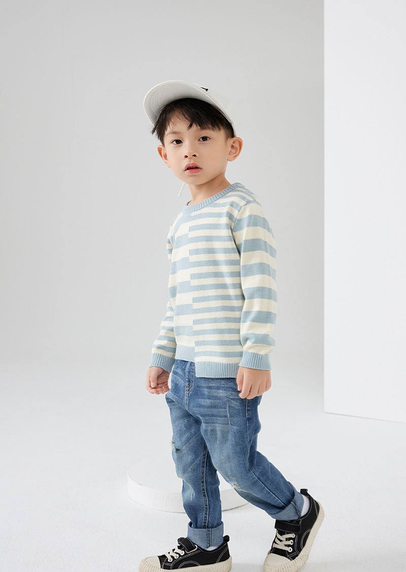 스팟 크로스보더 봄 여름 얇은 순면 스트라이프 아동용 스웨터 소년 소녀용 라운드 넥 풀오버 긴팔 카테고리 A 스웨터