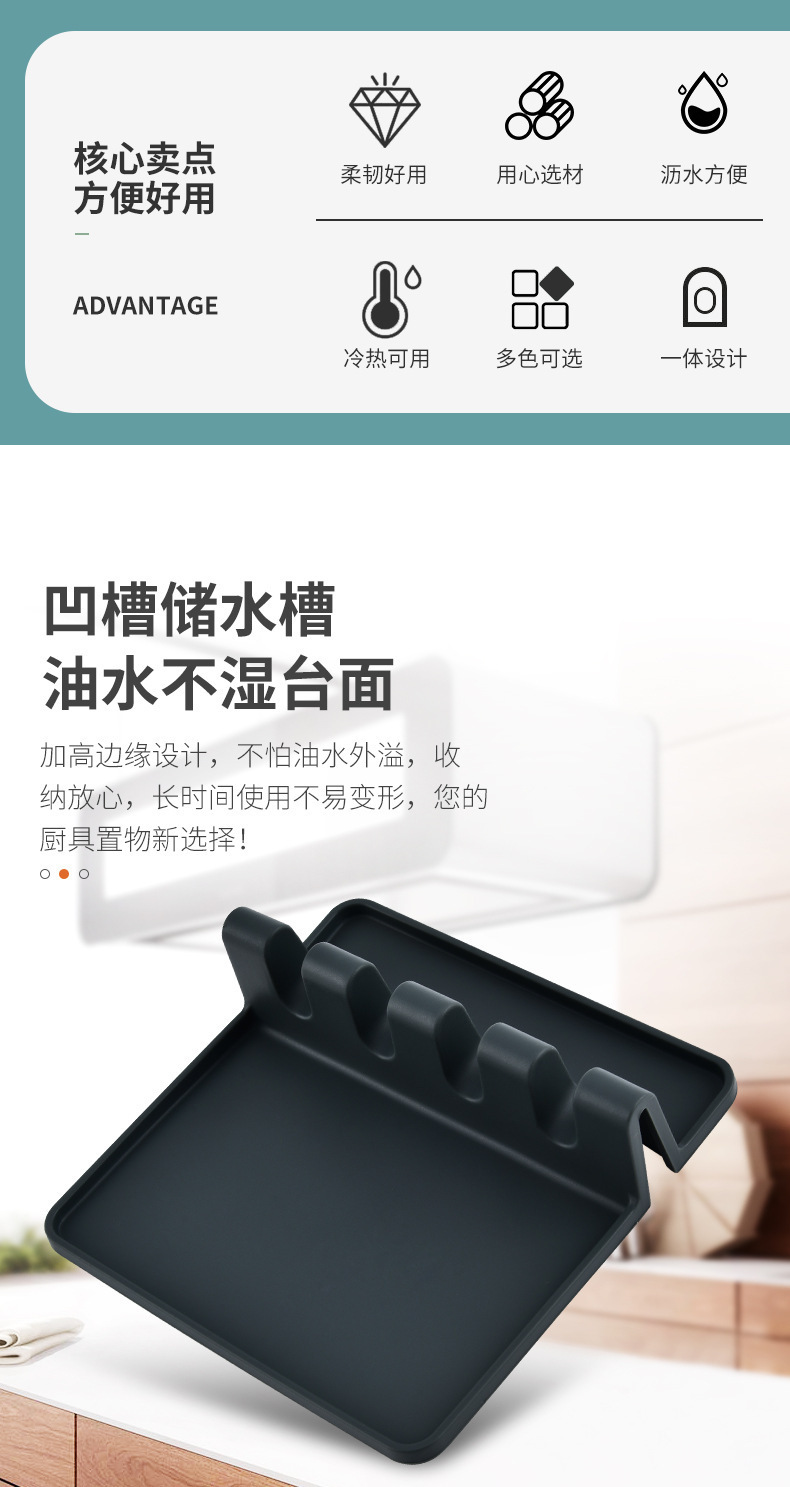 실리콘 주방기구 홀더, 주방 조리대 스푼 홀더, 스푼 보관 매트, 젓가락 홀더, 가정용 냄비 뚜껑 보관함스토어 가기