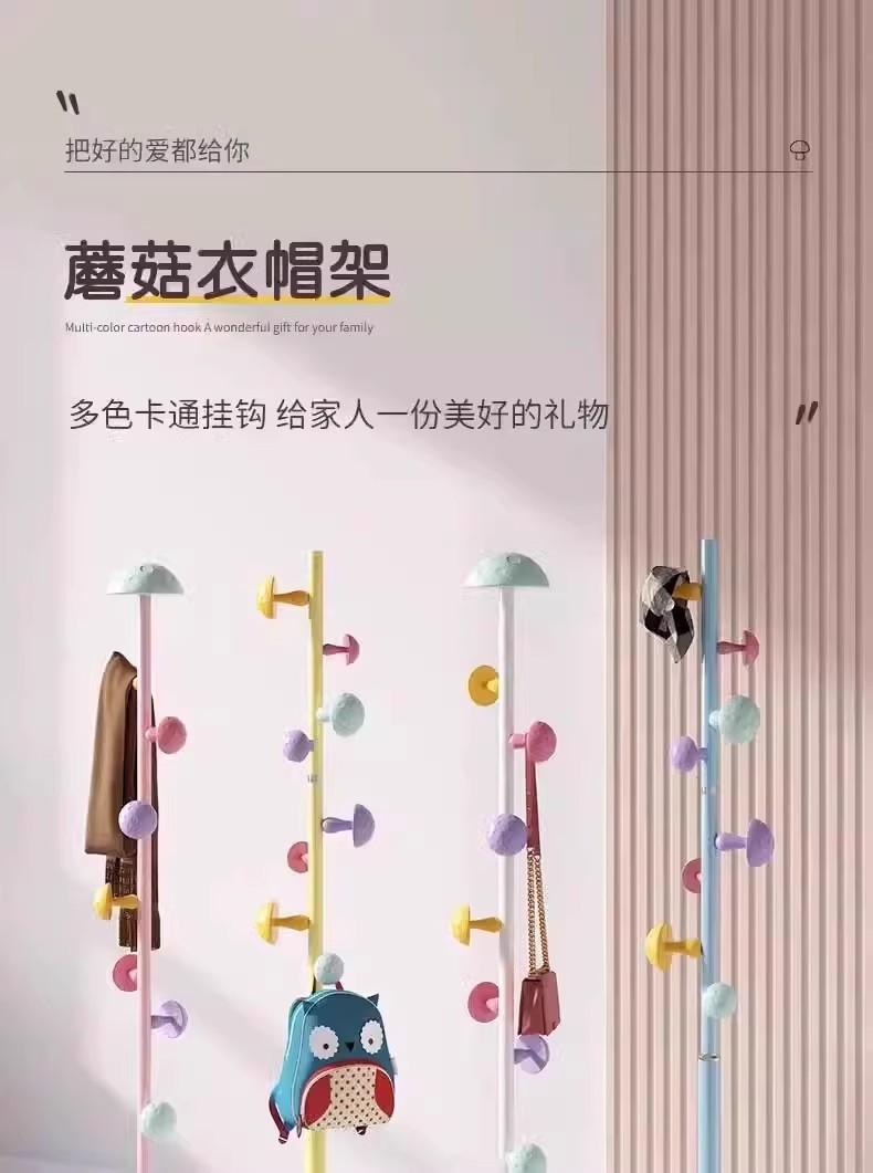 어린이 옷걸이 바닥 침실 버섯 걸이 거실 가정용 도파민 코트 랙 작은 공간 교수형 가방 브래킷