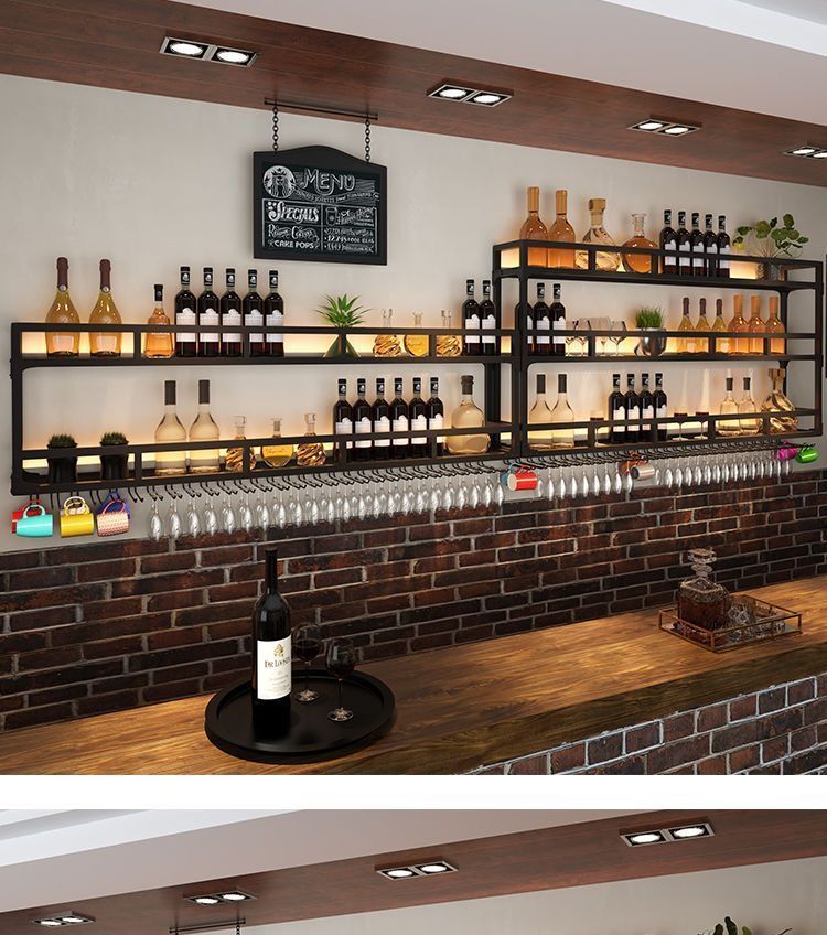 새로운 북유럽 벽걸이 형 와인 랙 바 와인 디스플레이 랙 반전 와인 유리 랙 인기있는 철 벽 장착 스토리지 랙스토어 가기