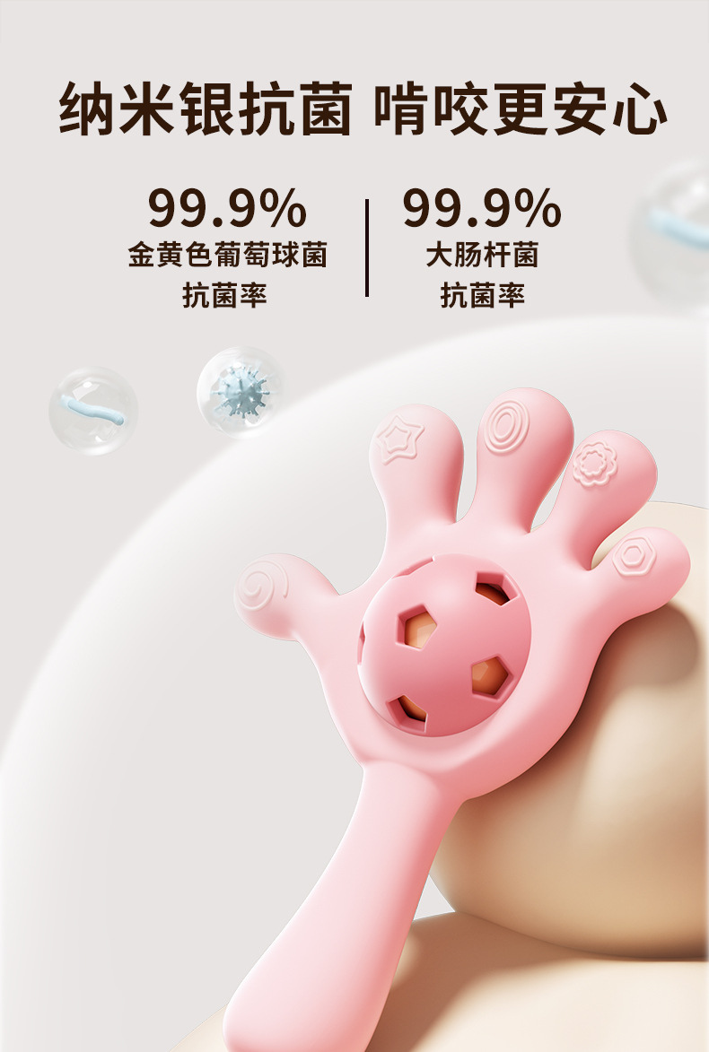 아기 손 딸랑이, 치발기, 아기가 씹을 수 있는 장난감, 1개월 된 아기가 손을 먹는 것을 방지하고 달래는 데 사용할 수 있는 끓일 수 있는 도구