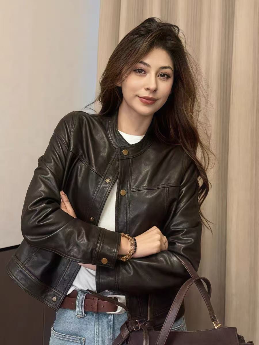 여성을위한 정품 가죽 자켓 2025 봄, 가을 새로운 한국 스타일 양피 오토바이 자켓 슬림 피트 가죽 자켓 짧은 스타일스토어 가기