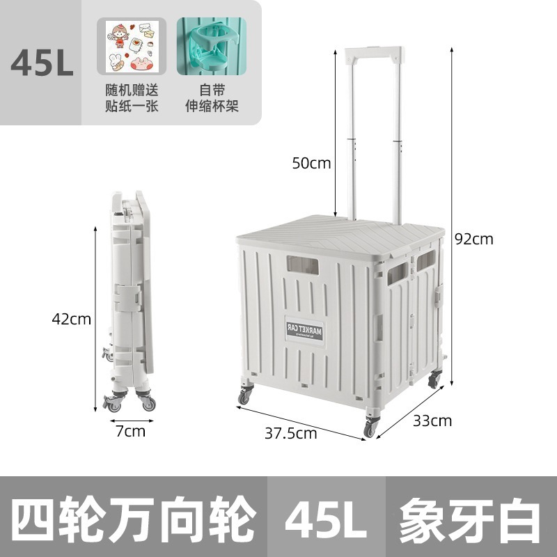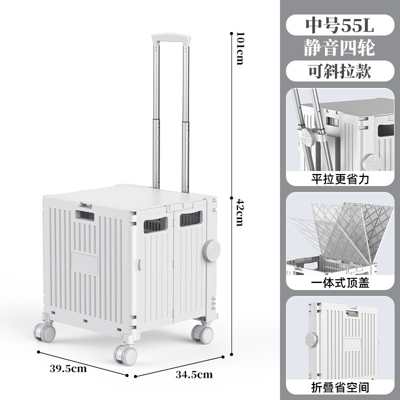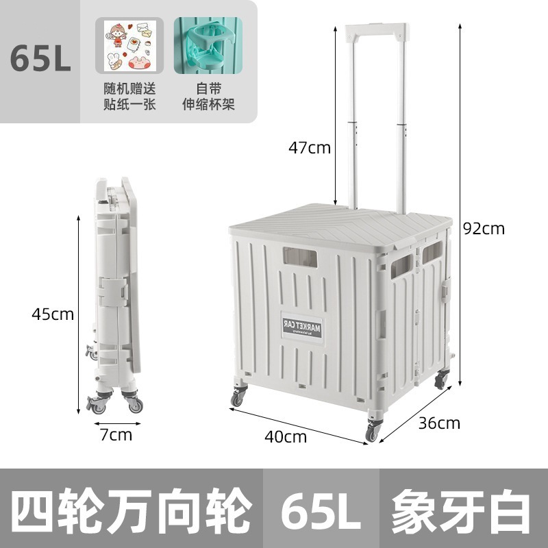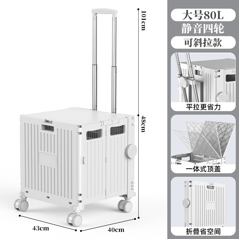 • [80L 두꺼워짐] 바퀴 4개 - 평평하게 당길 수 있음 - 아이보리 화이트✦