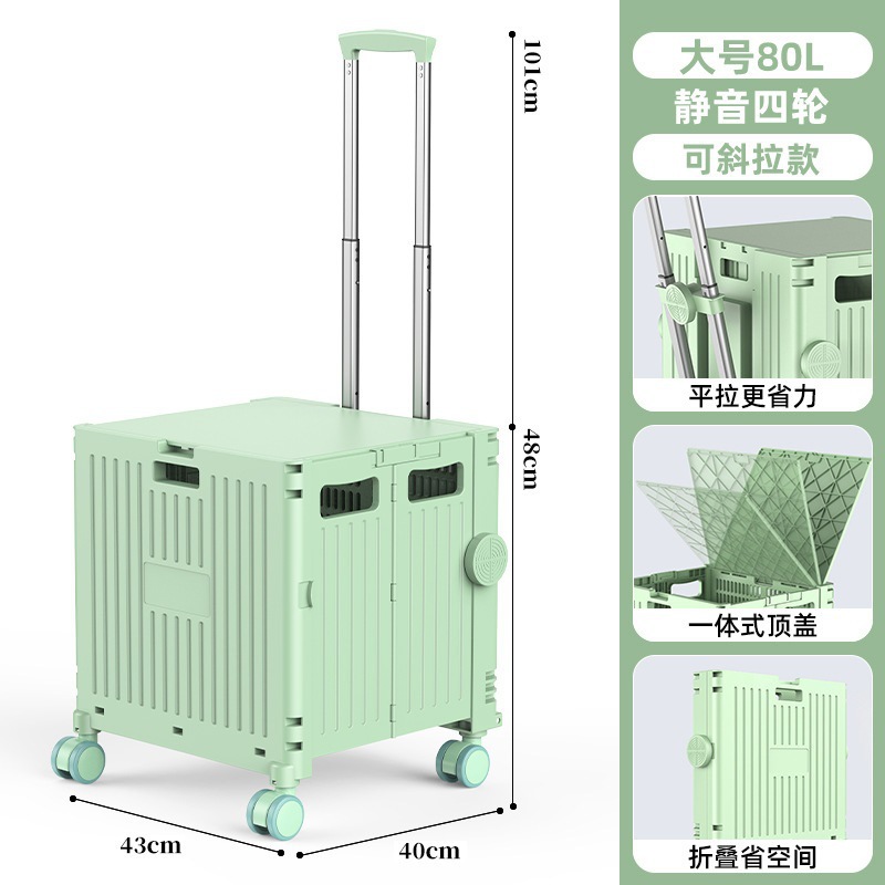 • [80L 두꺼워짐] 바퀴 4개 - 평평하게 당길 수 있음 - 아보카도 그린 ✦