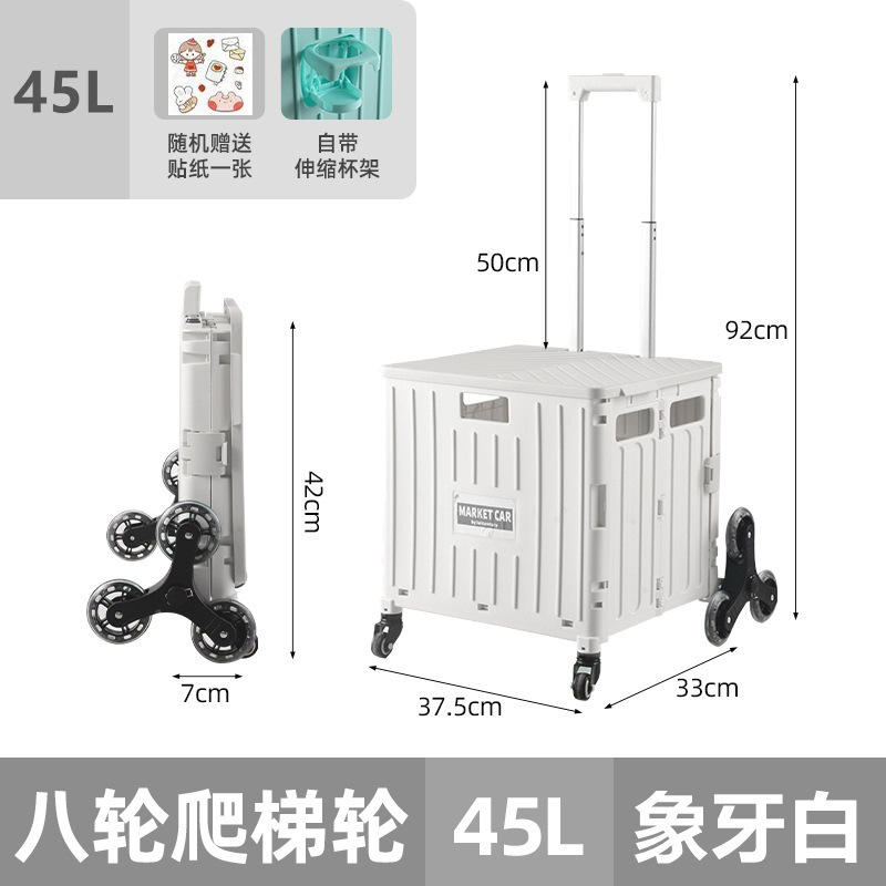 • 【45L】8륜 - 계단 오르기 가능 - 컵홀더 포함 - 아이보리 화이트✦