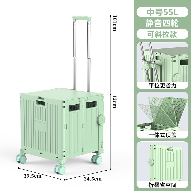 • [55L 두꺼워짐] 바퀴 4개 - 평평하게 당길 수 있음 - 아보카도 그린✦