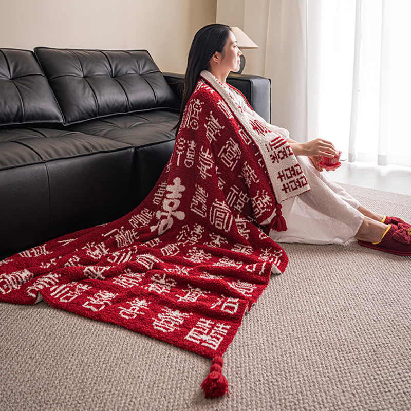 신랑 신부를위한 고급 백시 담요 낮잠 담요 중국어 축복 선물 상자 웨딩 레드 니트 담요