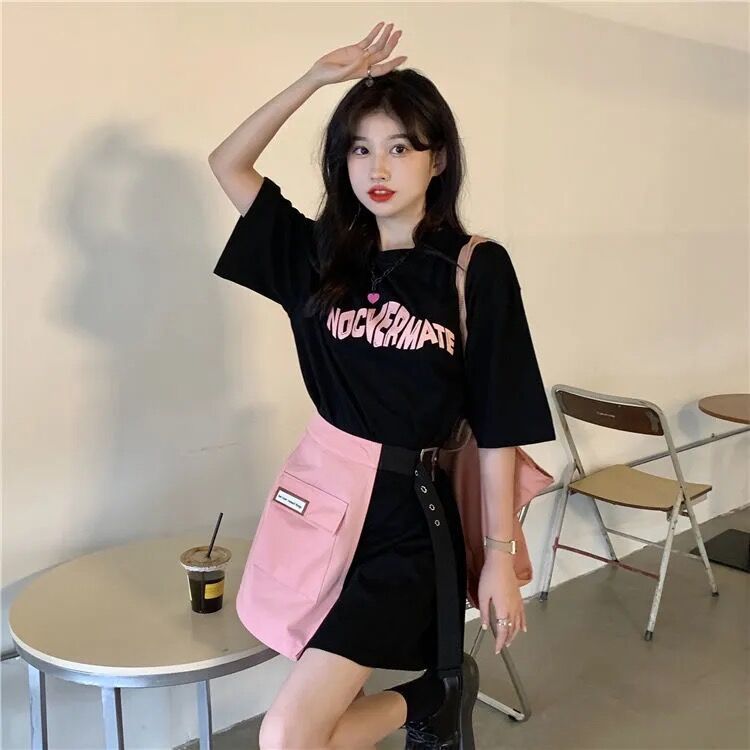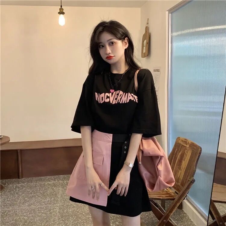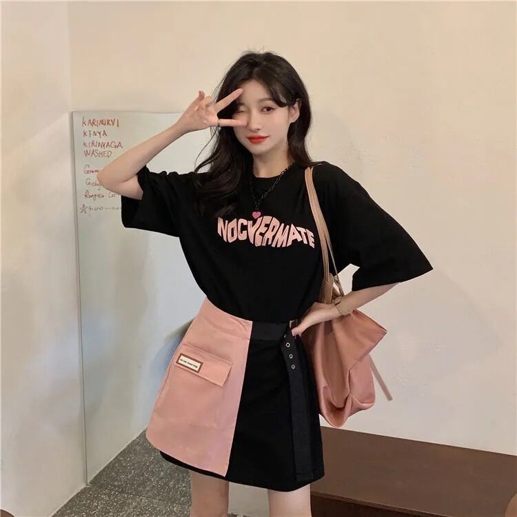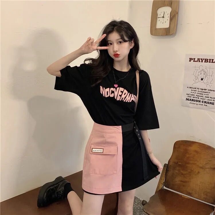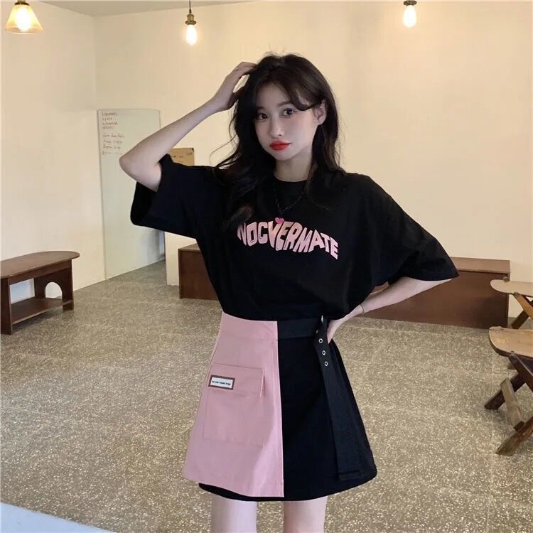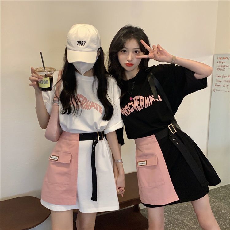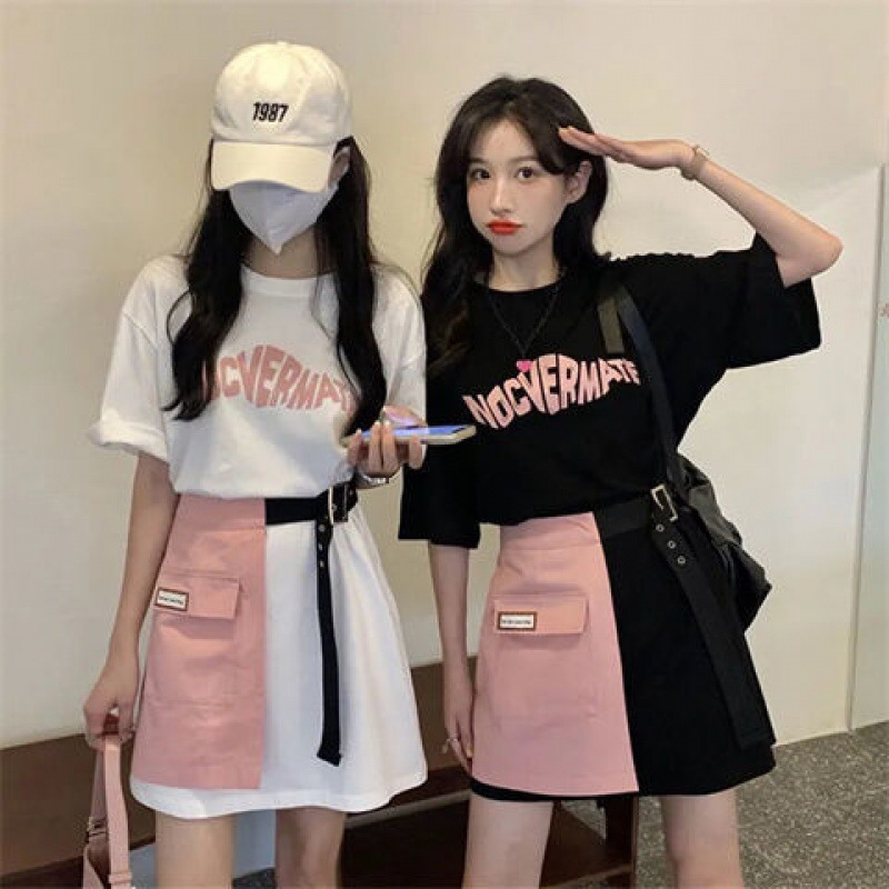 달콤한 멋진 세트 원피스 여름 반팔 소금 달콤한 반팔 티셔츠 투피스 여성의 2022 새로운 스타일 디자인 센스 인 트렌디스토어 가기