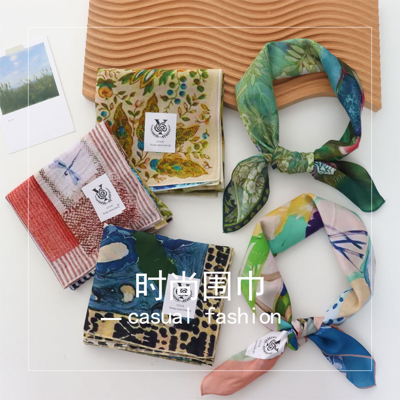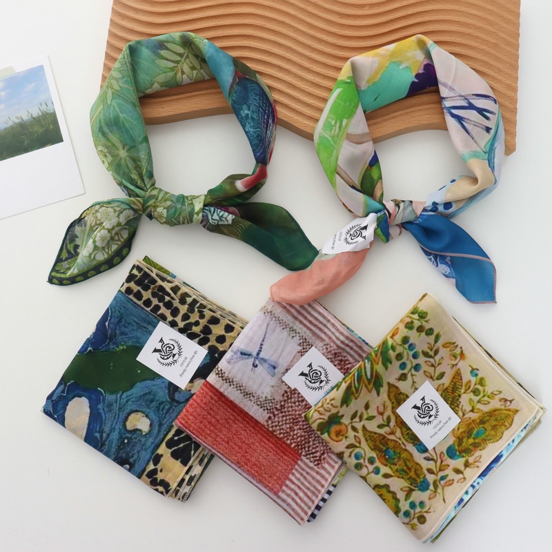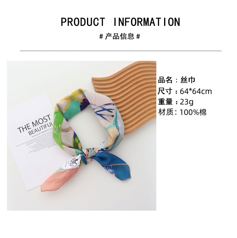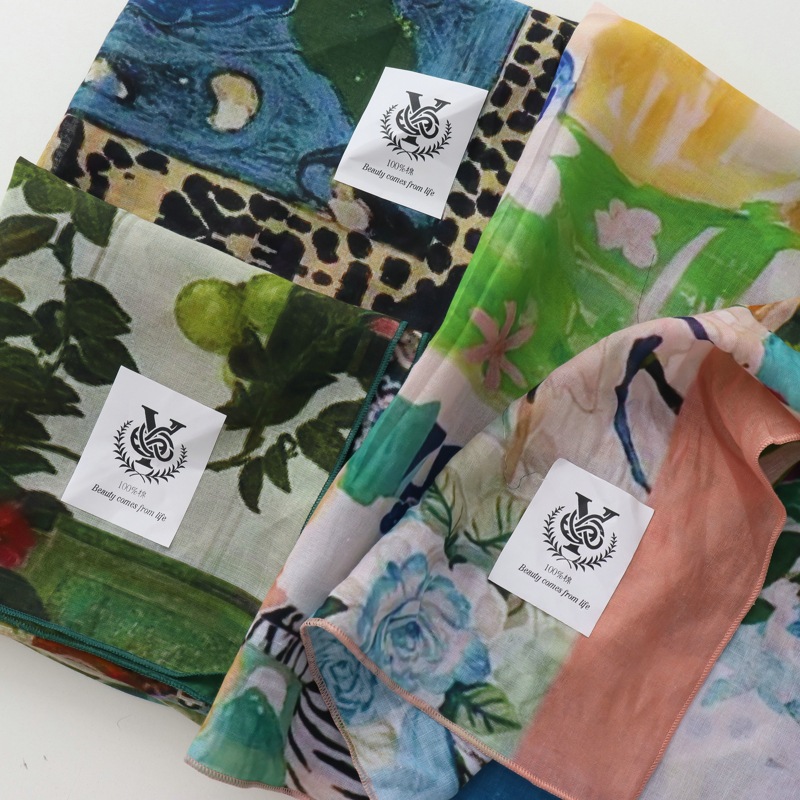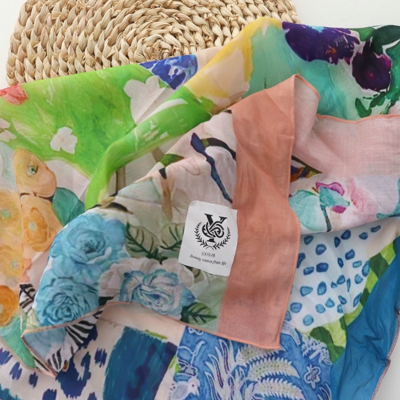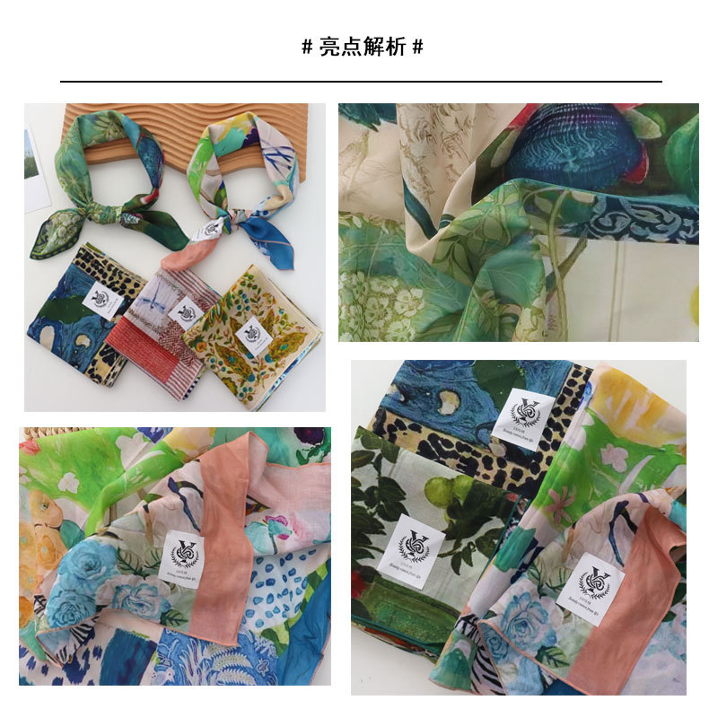 봄과 여름 2025 새로운 100% 면 스퀘어 스카프 여성의 얇은 녹색 유화 패션 스카프 목 보호 스카프 목도리 실크 스카프스토어 가기