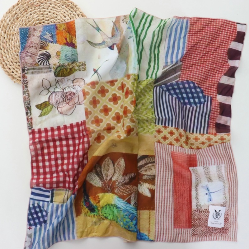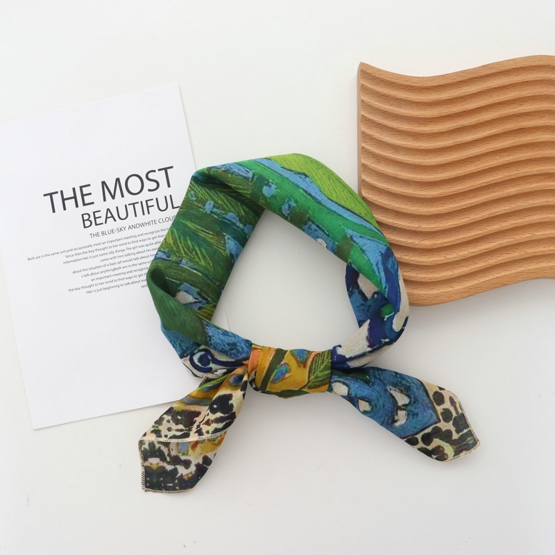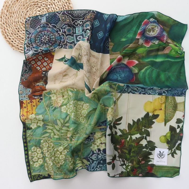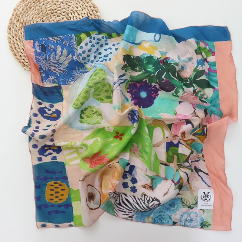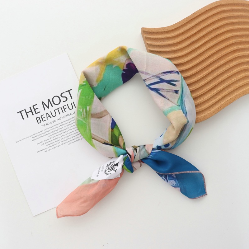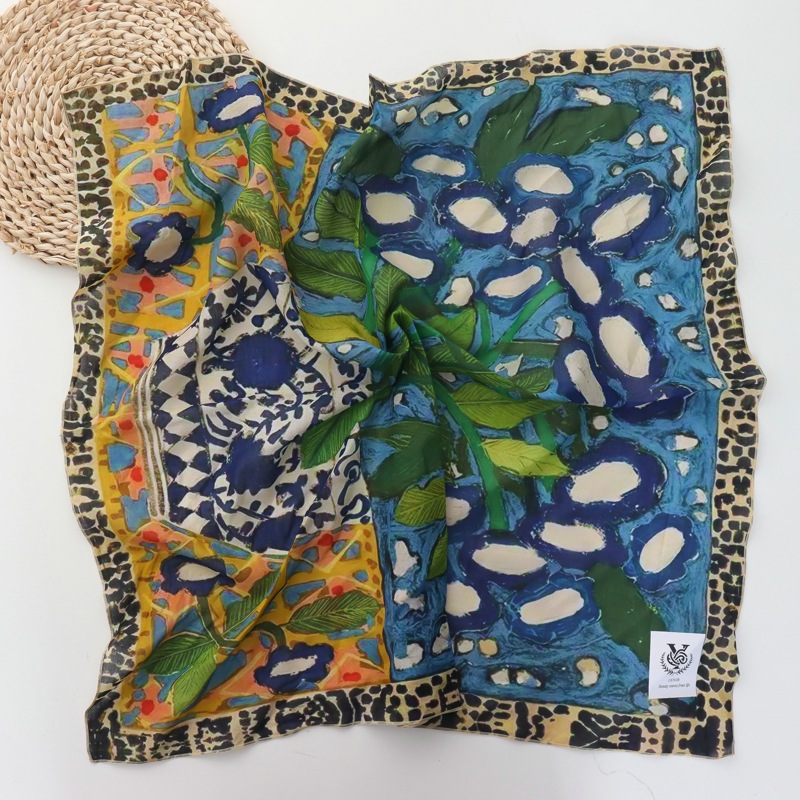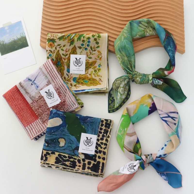 봄과 여름 2025 새로운 100% 면 스퀘어 스카프 여성의 얇은 녹색 유화 패션 스카프 목 보호 스카프 목도리 실크 스카프스토어 가기