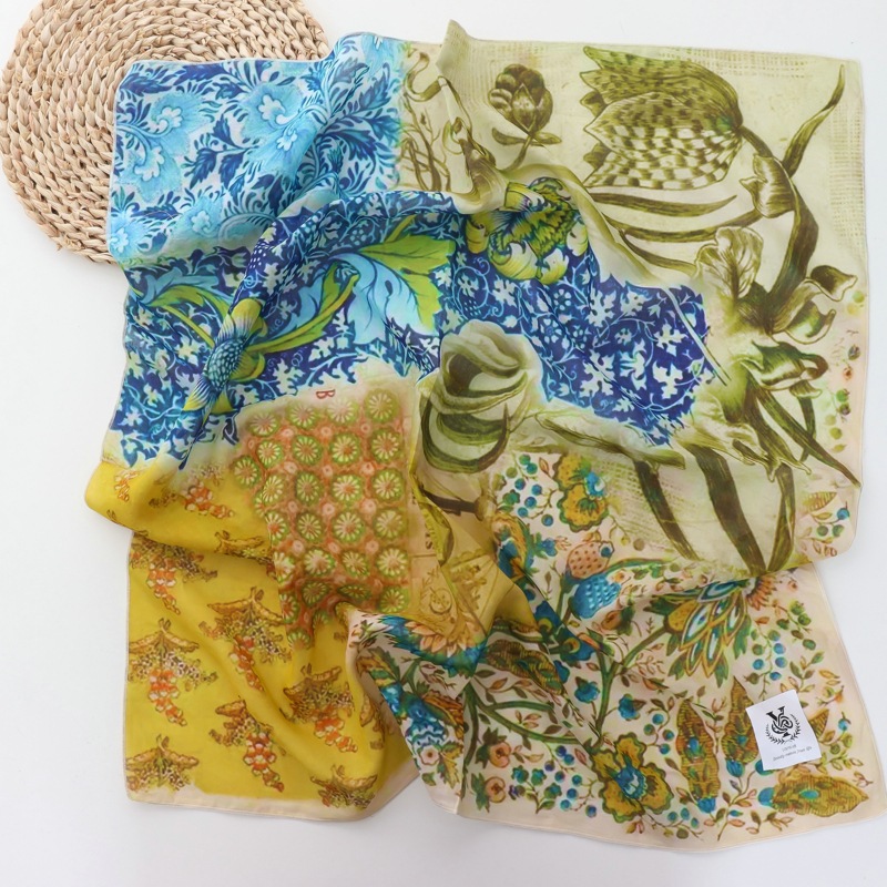 봄과 여름 2025 새로운 100% 면 스퀘어 스카프 여성의 얇은 녹색 유화 패션 스카프 목 보호 스카프 목도리 실크 스카프