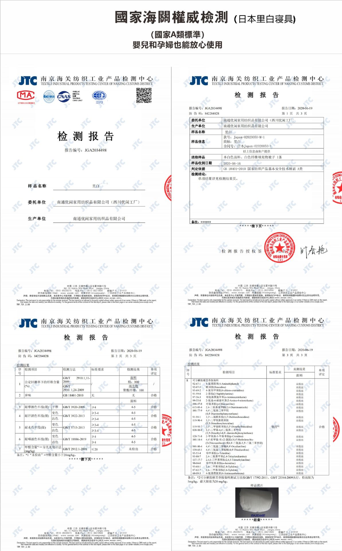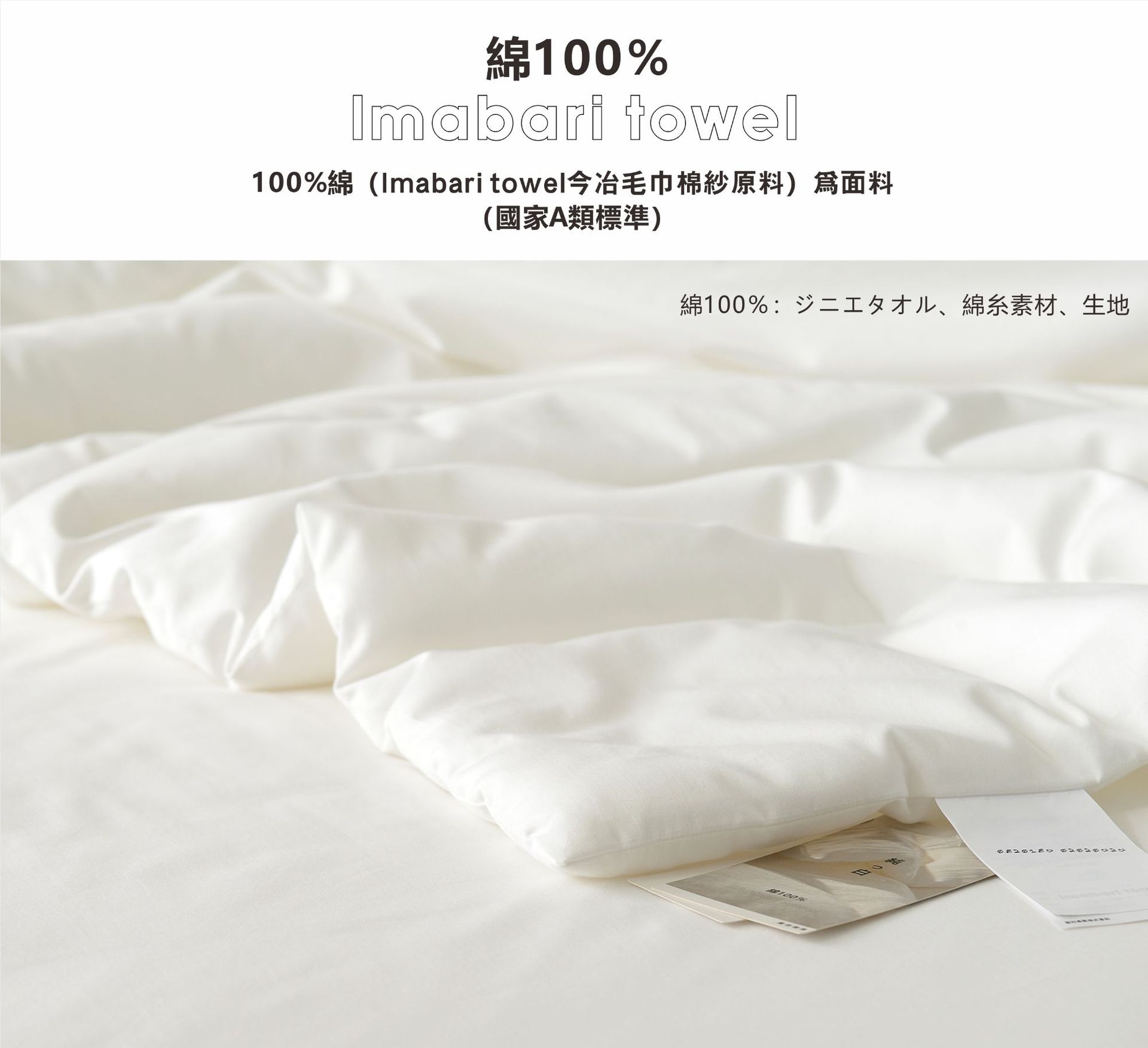 品牌:里白寝具(日本高端品牌) 面 料:100%棉(品牌:Imabari towel棉纱原料)【国家A类标准】。 Imabari towel(今治棉纱)在日本这个棉纱原料主要用来做最高标准的“今治毛巾”。 填充100%【小松精炼】超细纤维,柔软如丝。【国家A类标准】