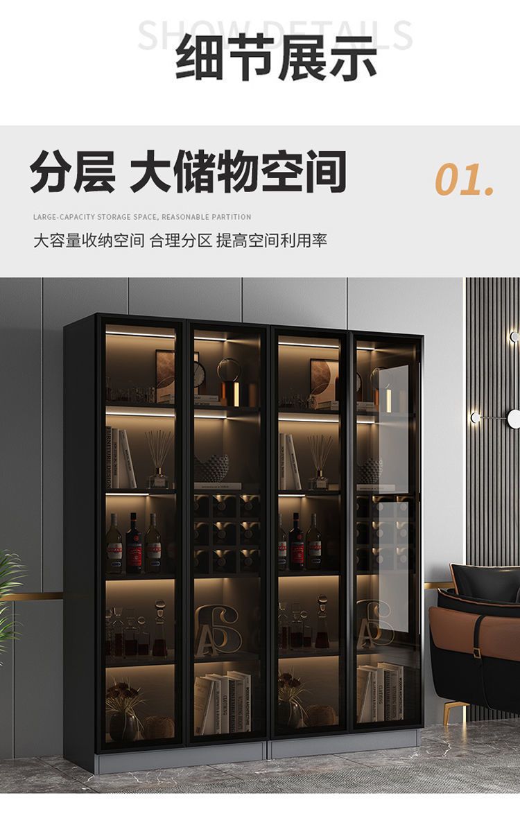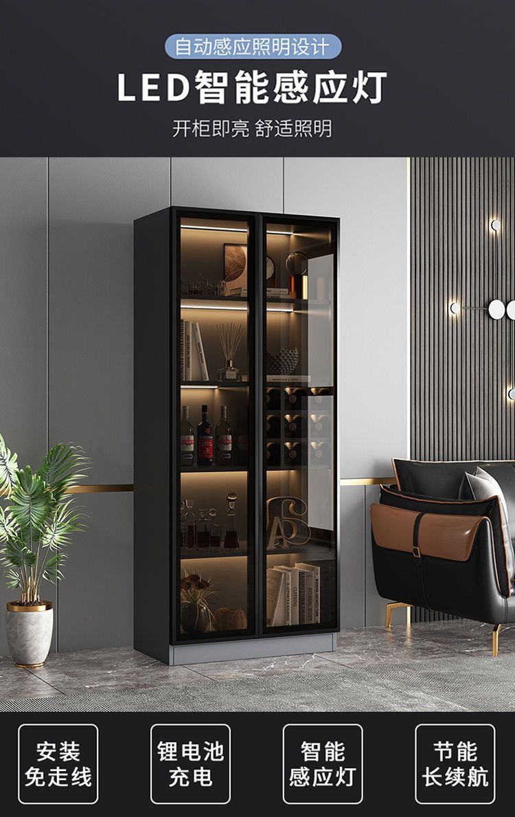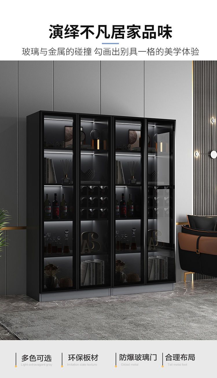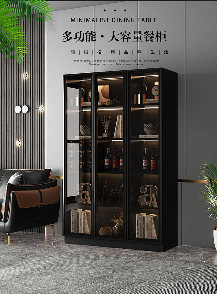 가벼운 고급 와인 캐비닛 벽 수납 캐비닛 현대적인 미니멀리스트 찬장 홈 사이드 캐비닛 유리 도어 디스플레이 캐비닛 거실