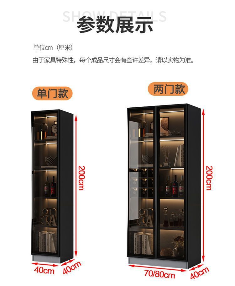• 80 길이*40 깊이*200 별이 빛나는 검정색 2도어 모델(와인 칸막이 포함)