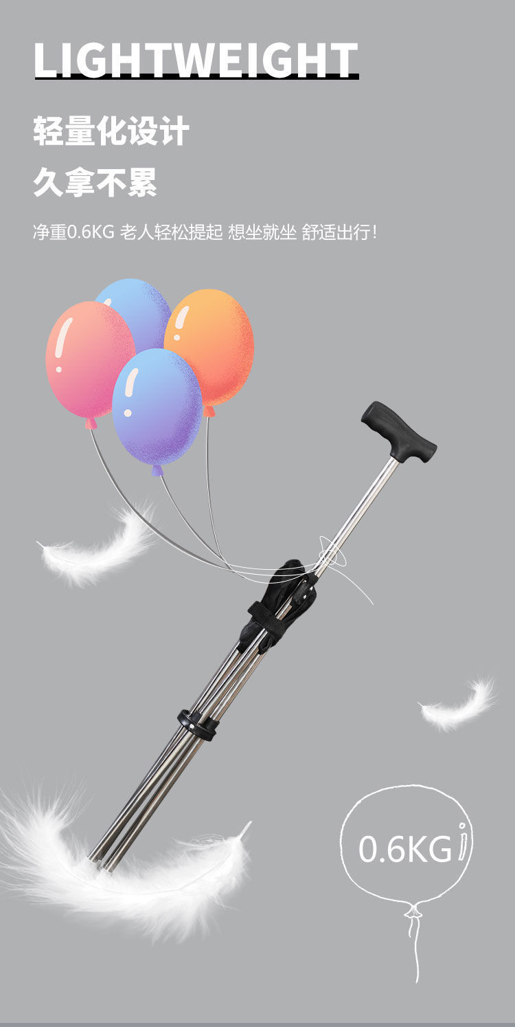 의료용 지팡이, 낙하 방지, 두꺼워지고 앉을 수 있는, 접이식 휴대용 지팡이 의자, 경량 삼각형 의자, 앉을 수 있는 텔레스코픽 등산용 지팡이