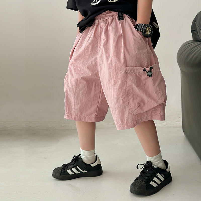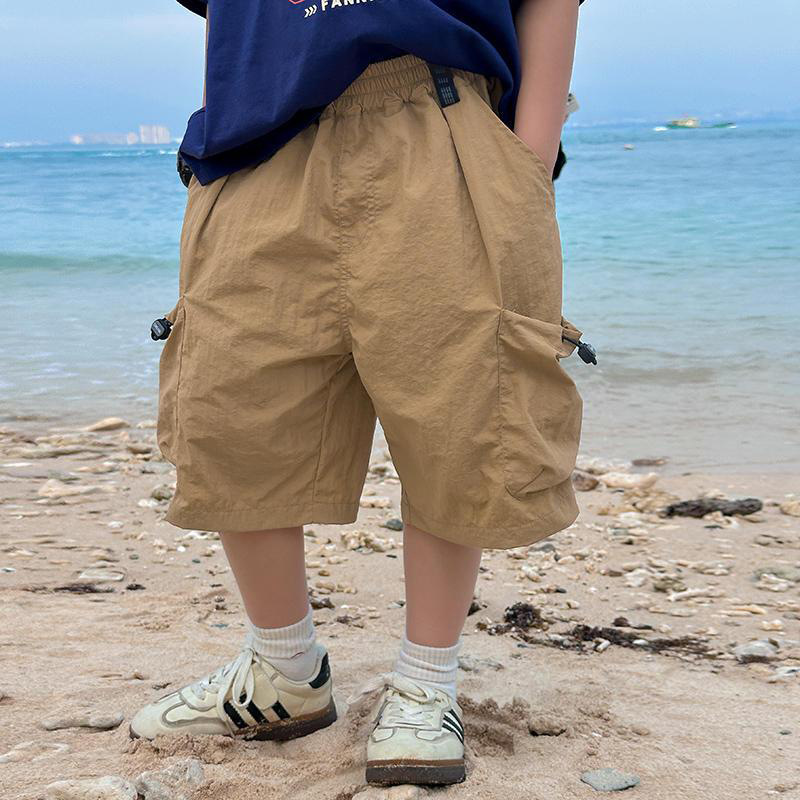 남아 여름옷 한국 스타일 멋스러운 루즈핏 얇은 중대형 아동용 5부 바지 2026 가볍고 얇은 멀티 포켓 카고 반바지