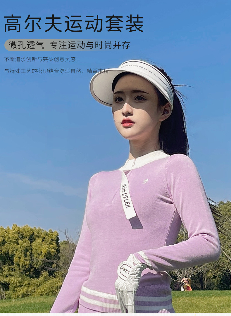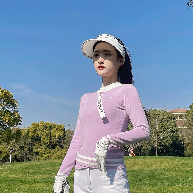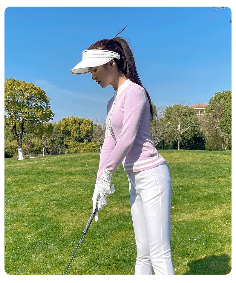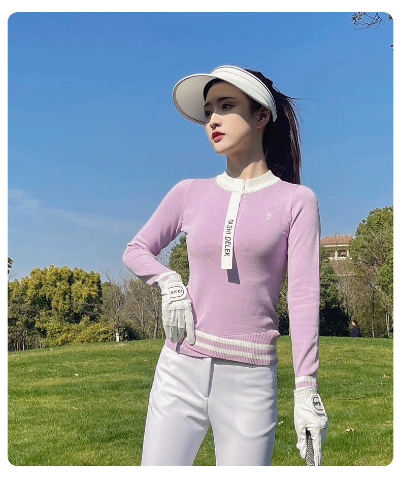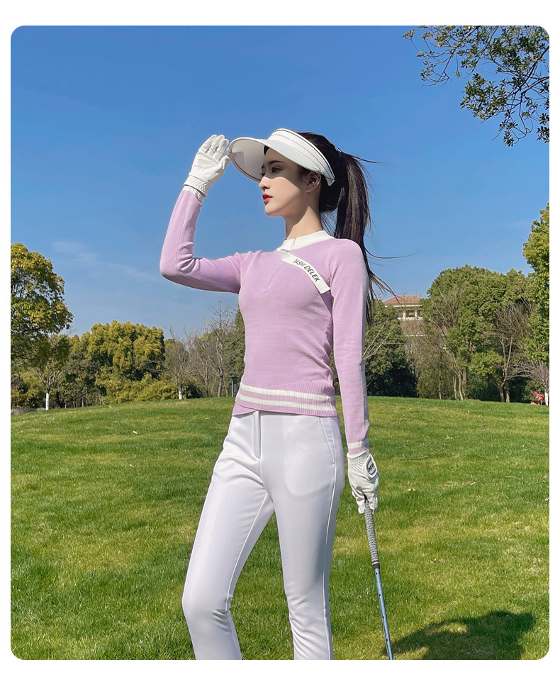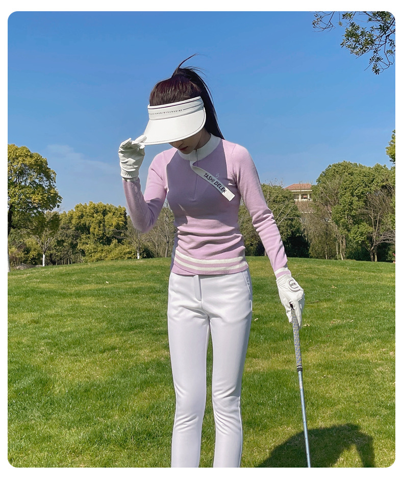 여성용 골프웨어, 아웃도어 슬림핏 스포츠 긴팔 니트 탑, 신축성 있는 속건성 9부 팬츠 플러스 벨벳스토어 가기