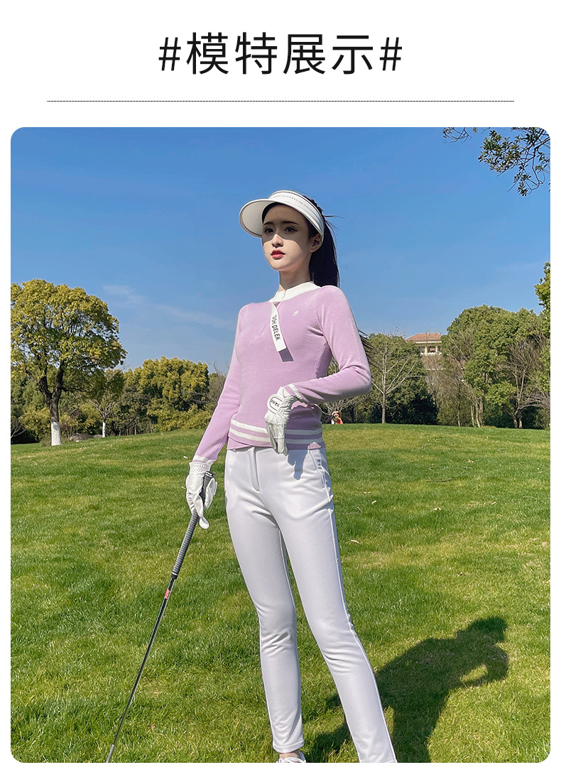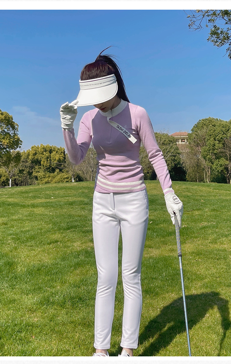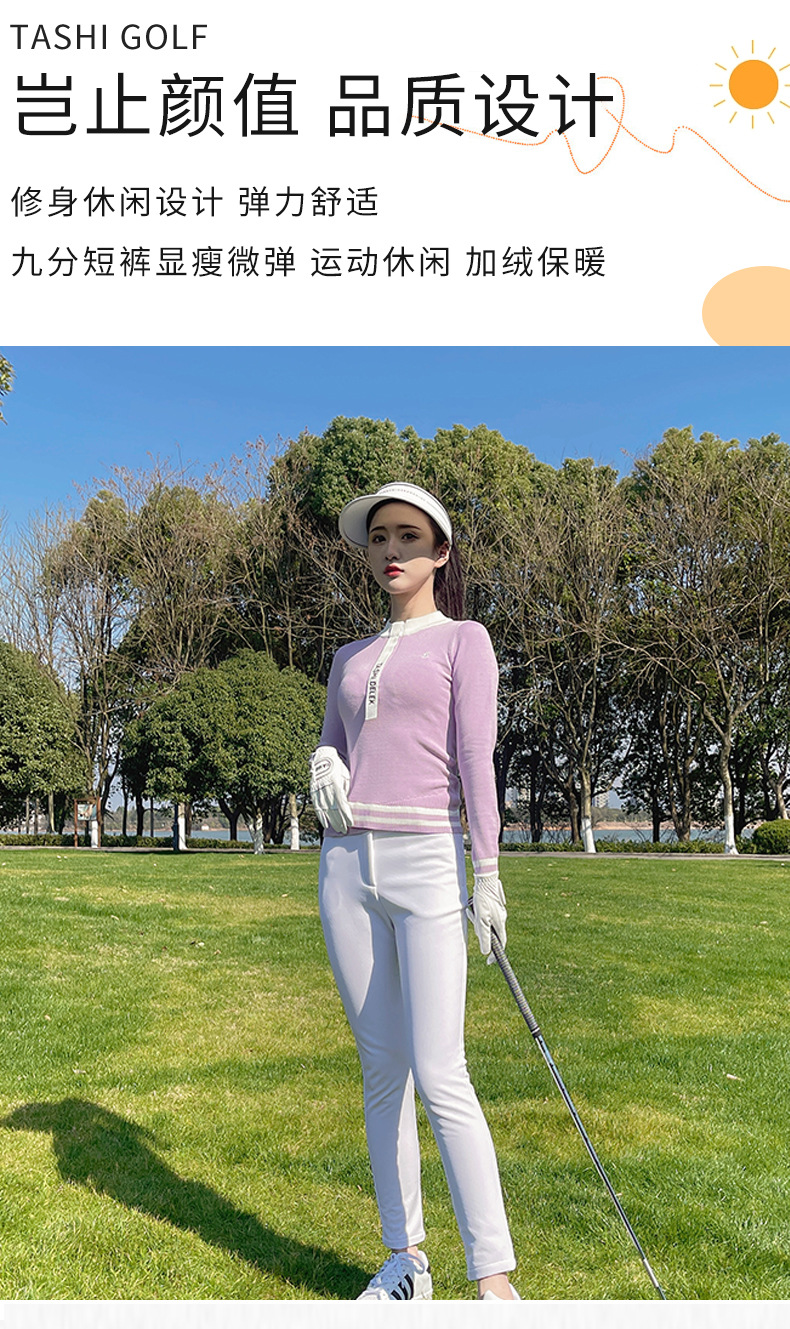 여성용 골프웨어, 아웃도어 슬림핏 스포츠 긴팔 니트 탑, 신축성 있는 속건성 9부 팬츠 플러스 벨벳