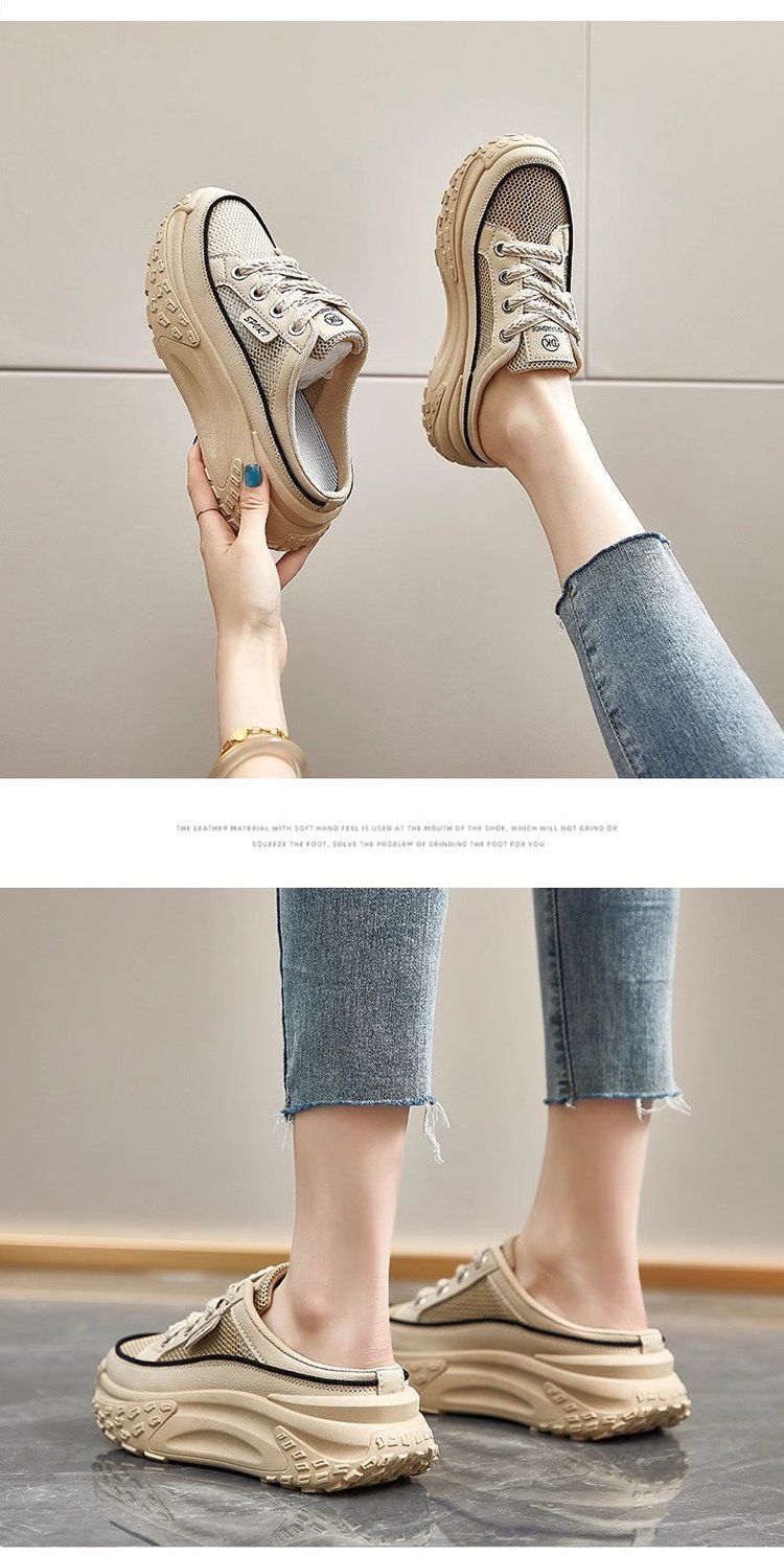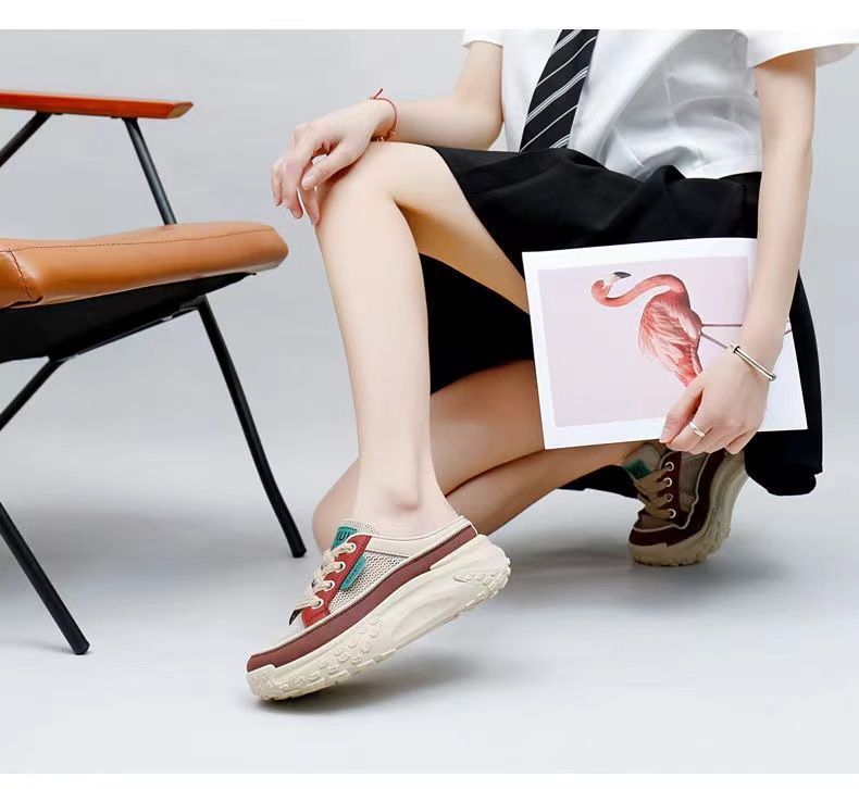 폭발성 할로우 두꺼운 밑창 작업 밖 유행 올 매치 게으른 신발 2025 여름 Baotou 하프 슬리퍼