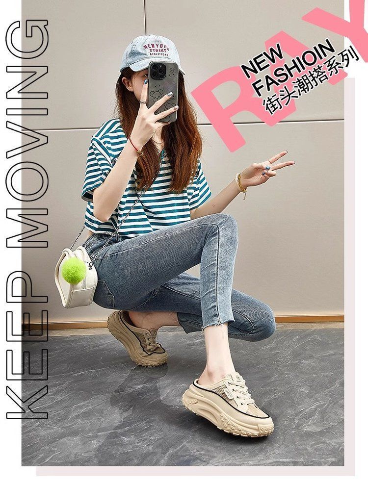 폭발성 할로우 두꺼운 밑창 작업 밖 유행 올 매치 게으른 신발 2025 여름 Baotou 하프 슬리퍼스토어 가기