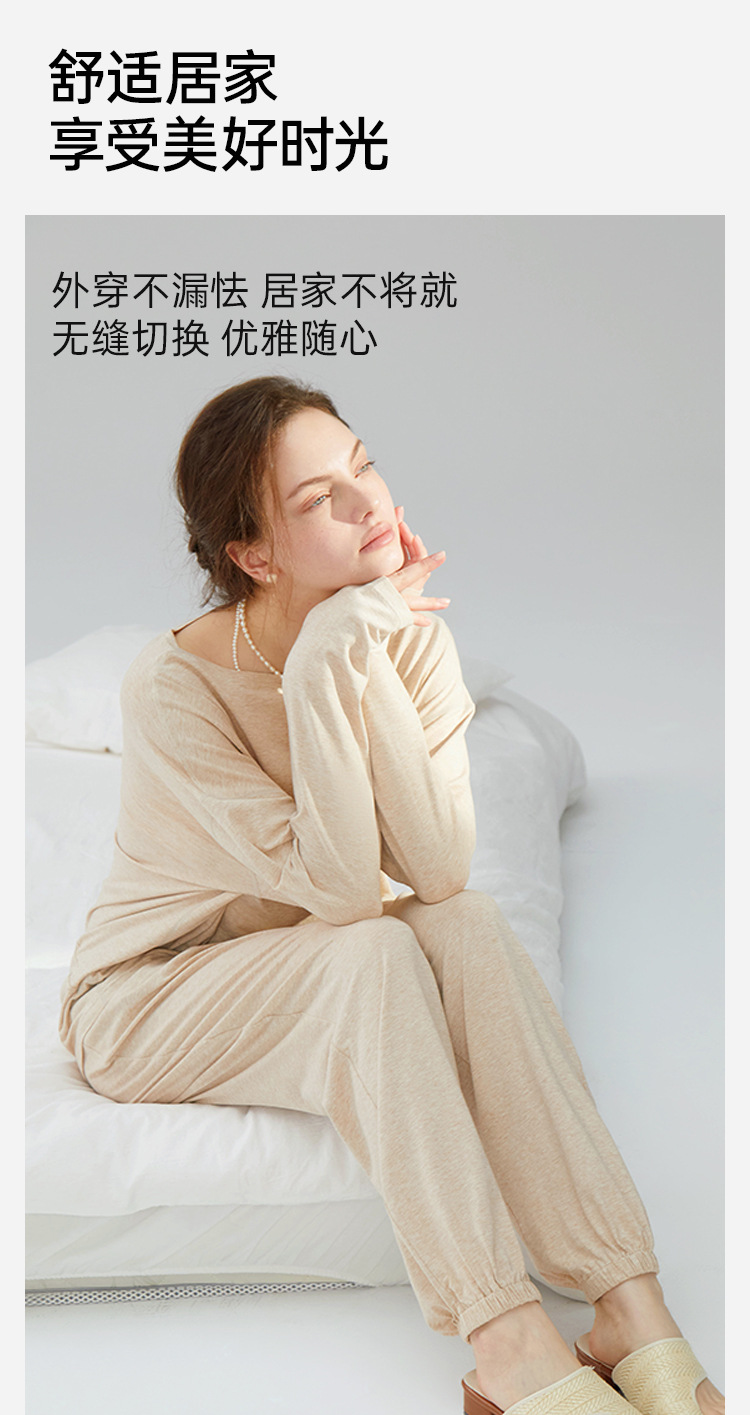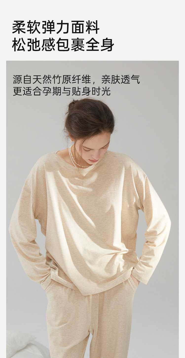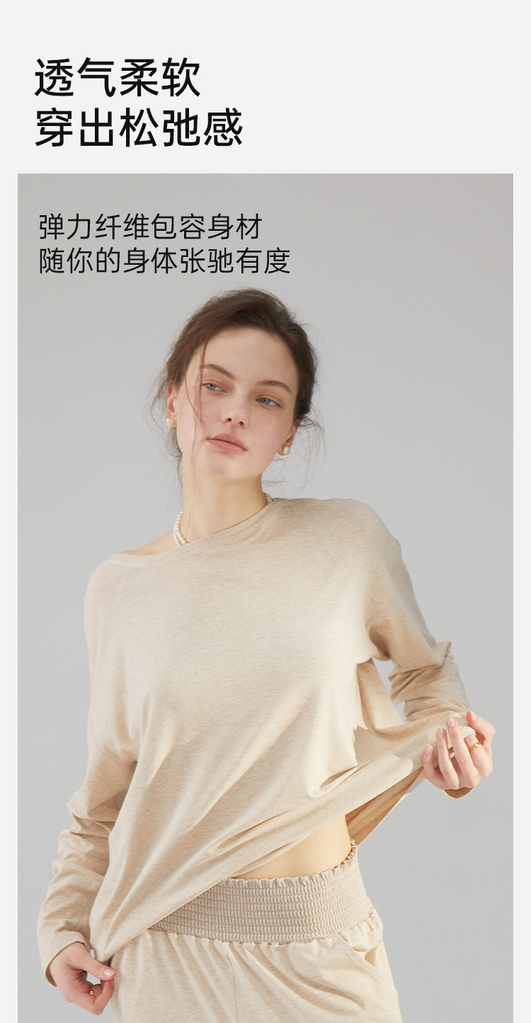 라운드넥 긴팔 티셔츠 여성 캐주얼 심플 홈웨어 잠옷 봄 가을 다용도 단색 이너웨어 통기성스토어 가기