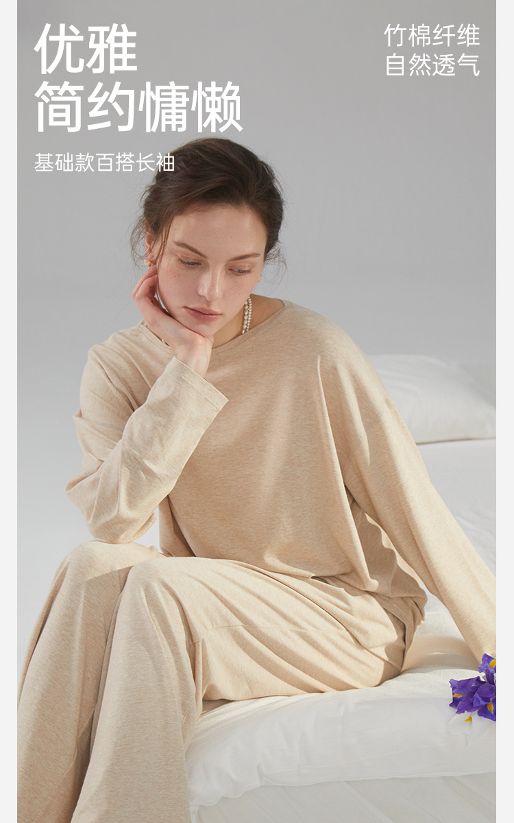 라운드넥 긴팔 티셔츠 여성 캐주얼 심플 홈웨어 잠옷 봄 가을 다용도 단색 이너웨어 통기성