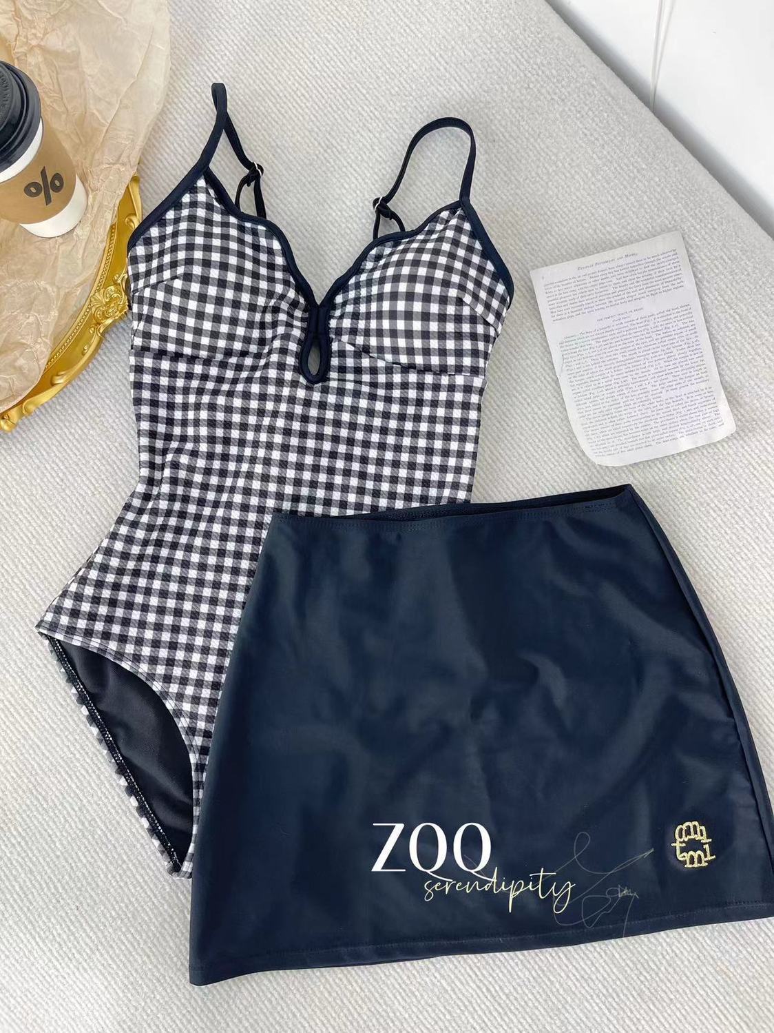 뜨거운 판매 순수한 욕망 바람 원피스 수영복 섹시한 달콤한 체크 무늬 하이 엔드 투피스 작은 키 수영복 도매 세트스토어 가기
