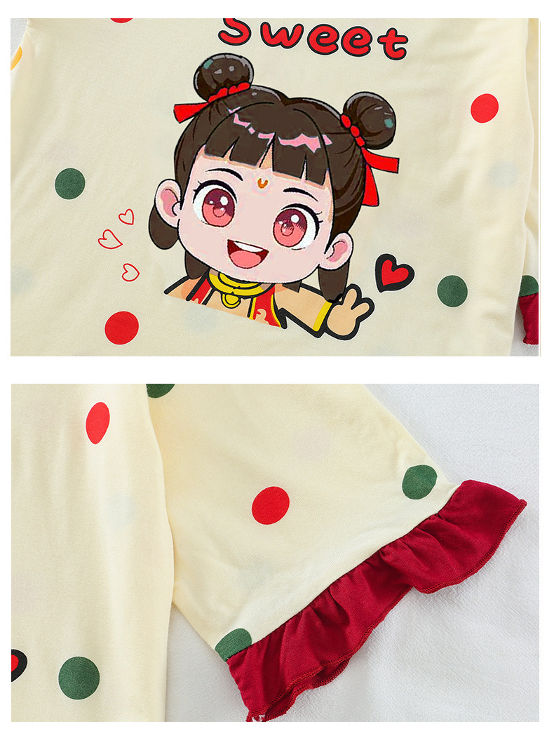 소녀 잠옷 2025 새로운 어린이 여름 7 점 소매 세트 만화 귀여운 레이스 홈 의류 세트스토어 가기