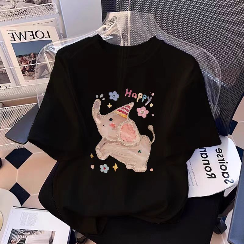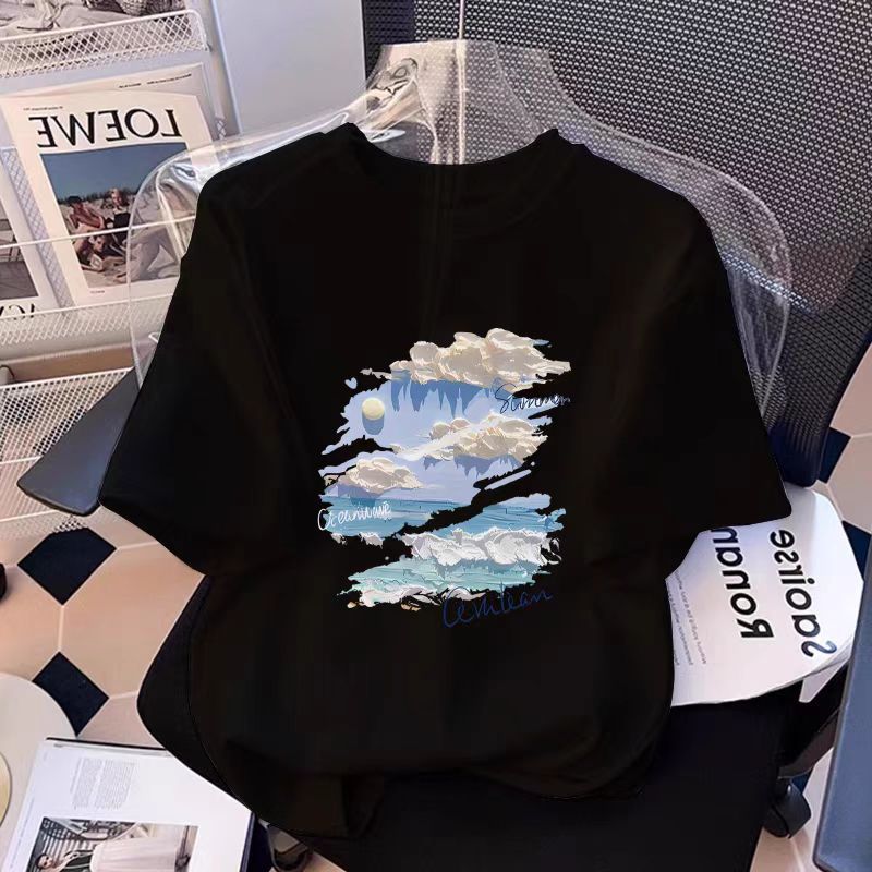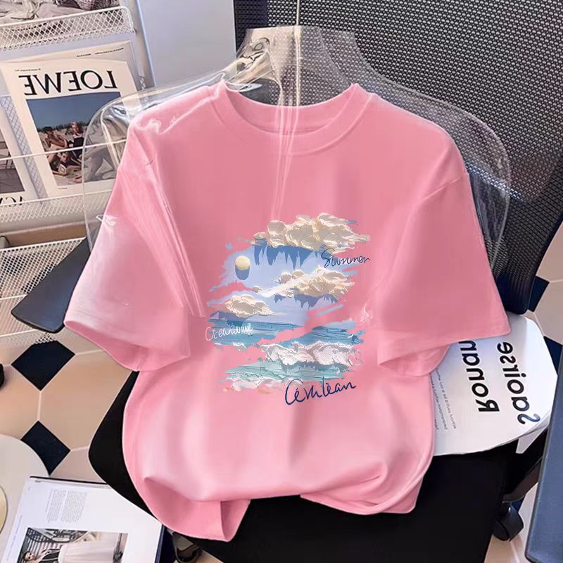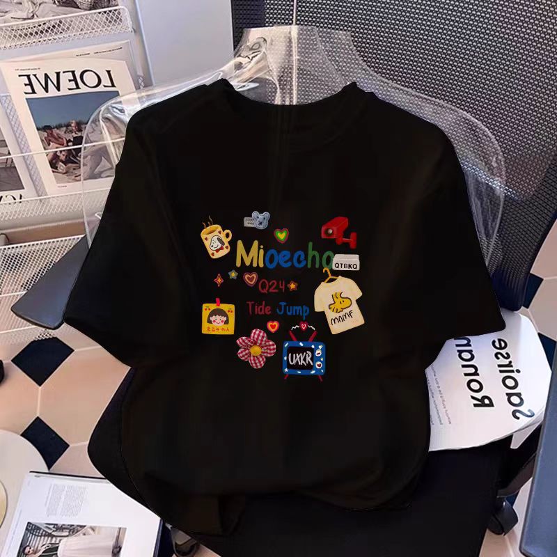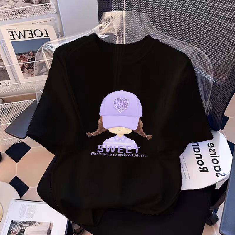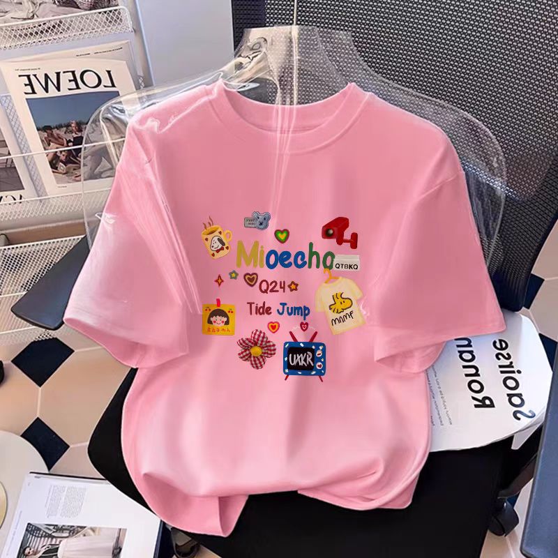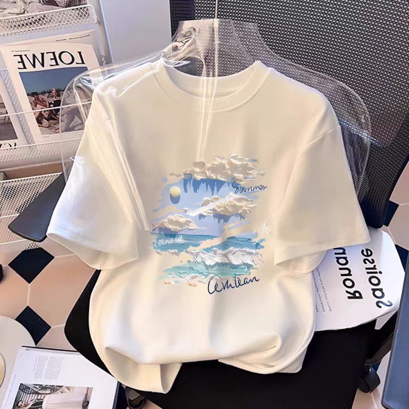 흰색 면 여성 반팔 티셔츠 2025 새로운 인기 여름 소녀 의류상의스토어 가기
