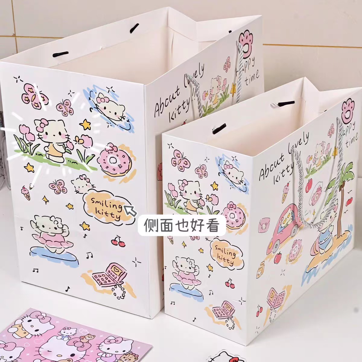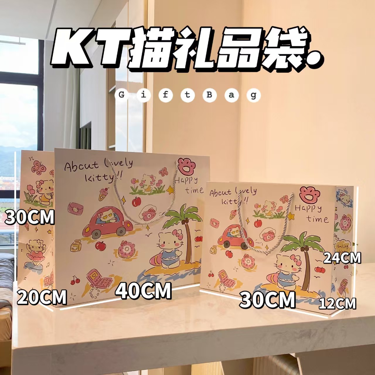 ins 휴가용 KT 고양이 핸드백 소녀스러운 선물 가방 대형 하드 카드지 대용량 선물 가방 만능 선물 가방스토어 가기