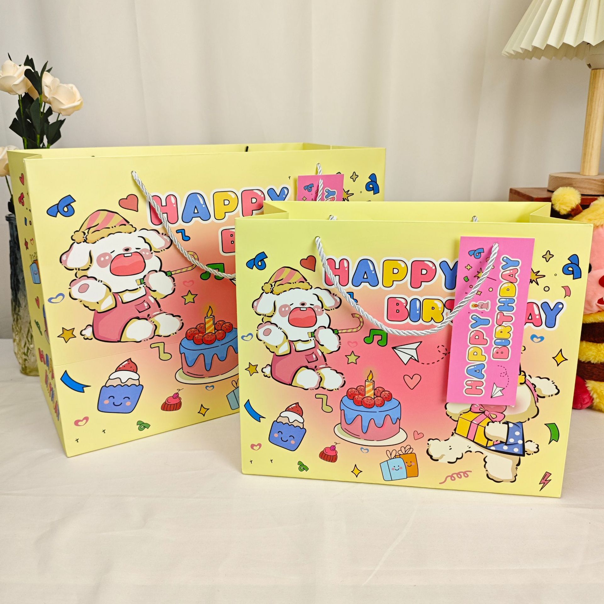 • 생일 강아지 - 카드 포함, 흰색 판지, 대형 크기: 30*15*25cm