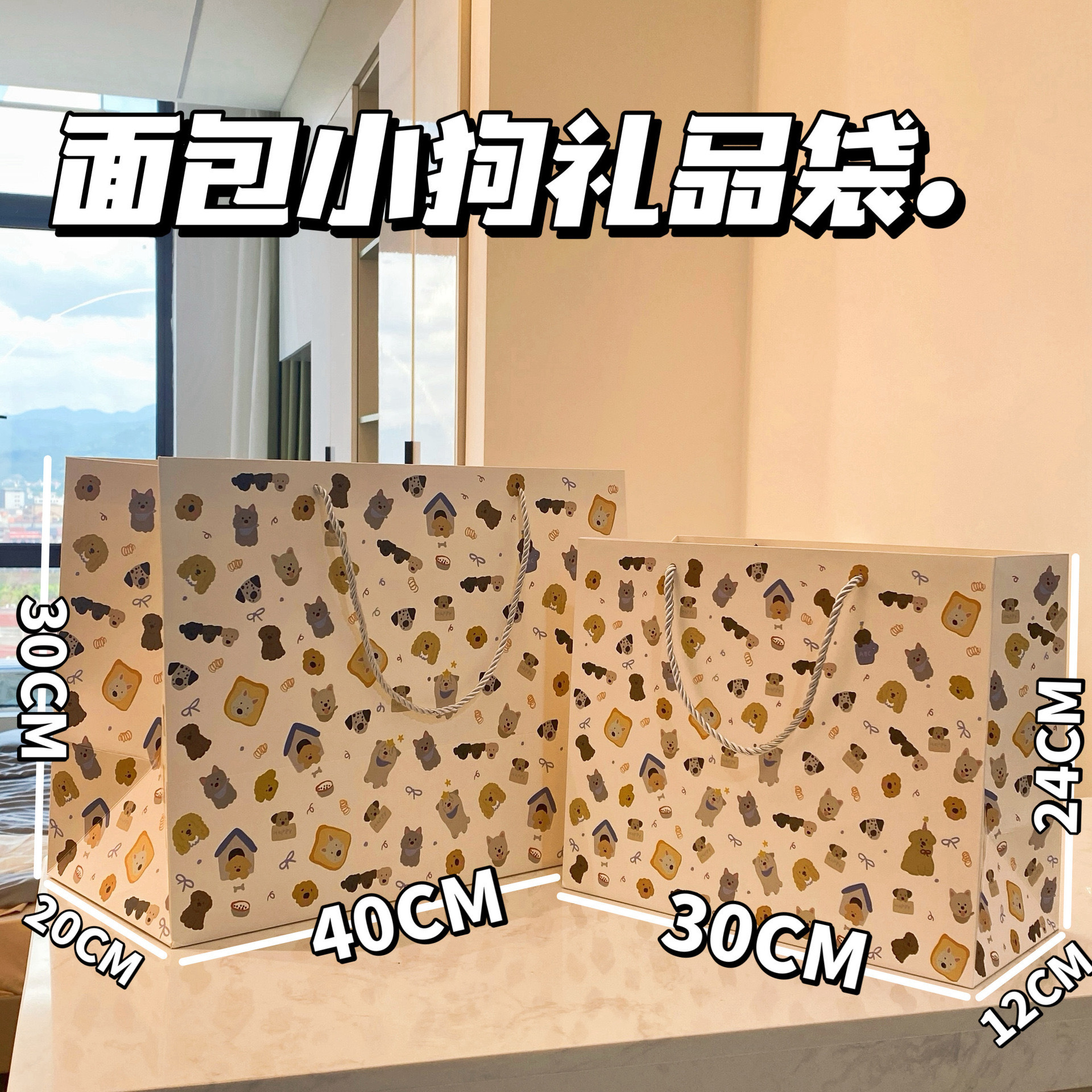 • 빵 강아지, 흰색 판지, 초대형 크기: 40*20*30cm