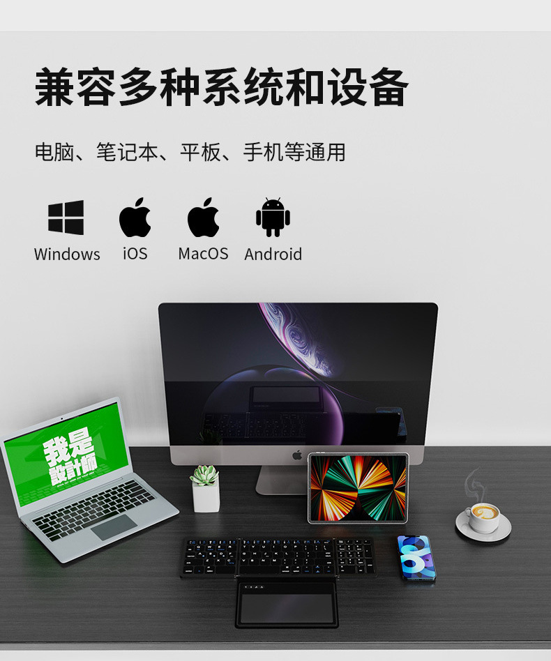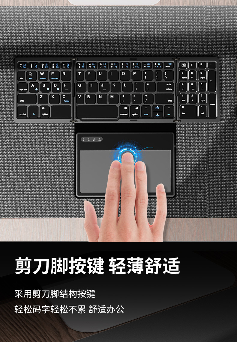 터치패드가 포함된 가죽 무선 블루투스 키보드 태블릿 휴대폰 컴퓨터 3시스템 외부 휴대용 범용 키보드