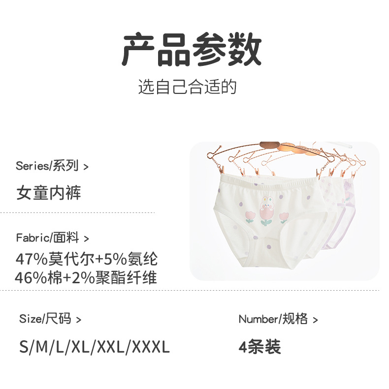 • M088 Zixia Princess-4 팩 {피부 친화적인 모달 항균 스타일}