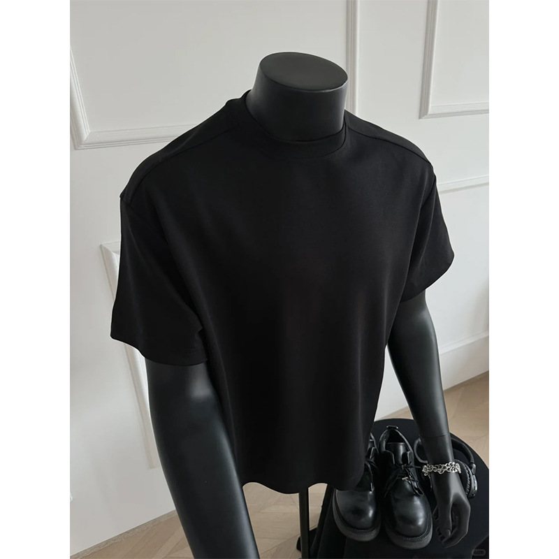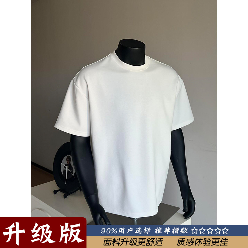 무거운 빗 코튼 화이트 어깨 짧은 소매 남자와 여자의 미국 라운드 넥 티셔츠 솔리드 컬러 내부 반쪽 소매베이스 셔츠