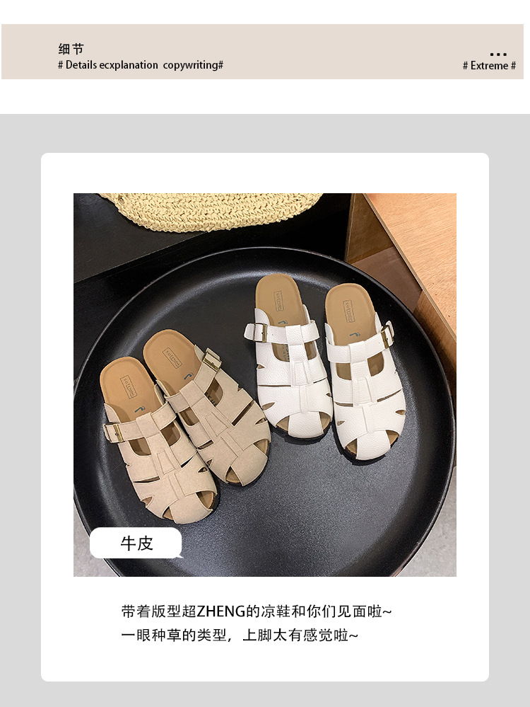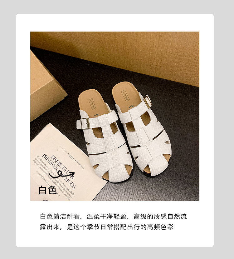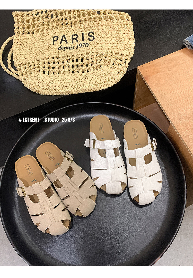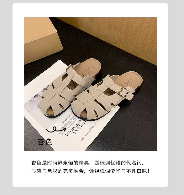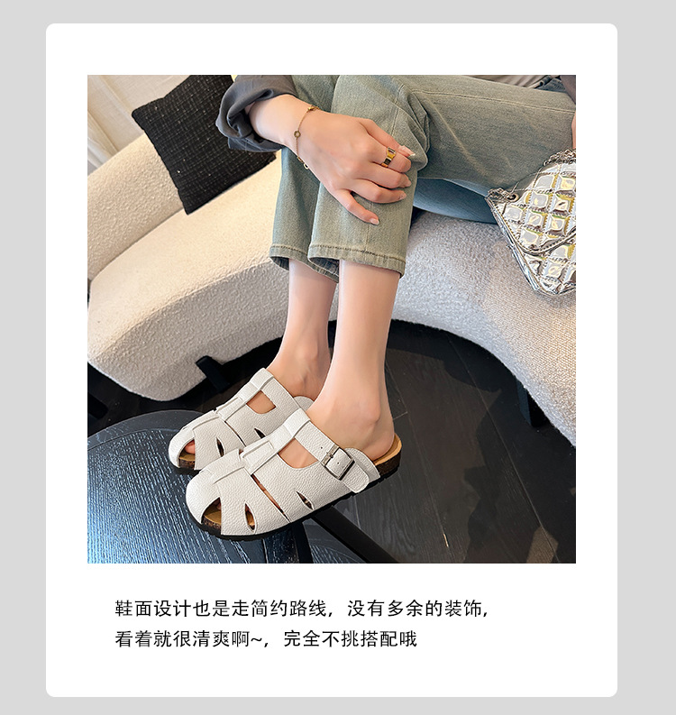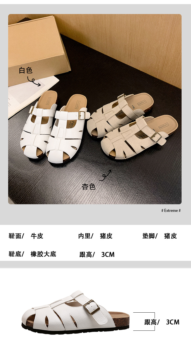 Grape Mom's 2025 새로운 여름 스타일 정품 가죽 중공 두꺼운 밑창 Baotou Birkenstock 슬리퍼 여성용 하프 슬리퍼 겉옷스토어 가기