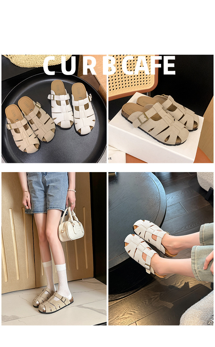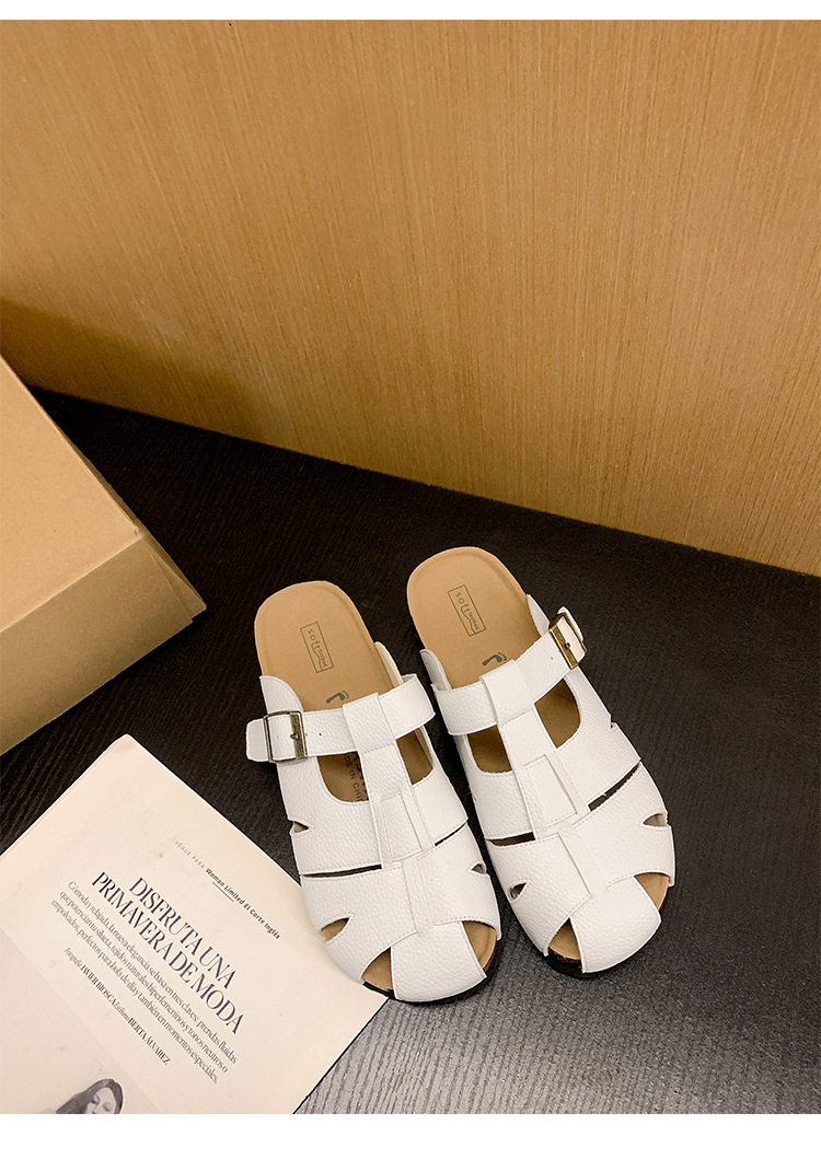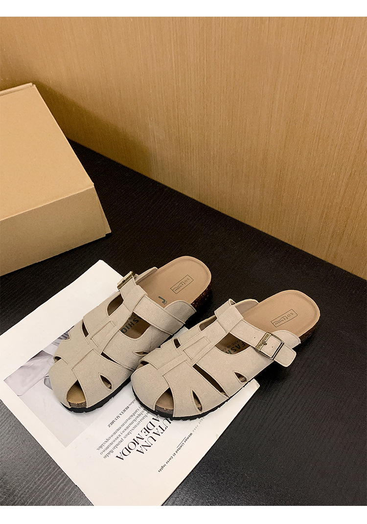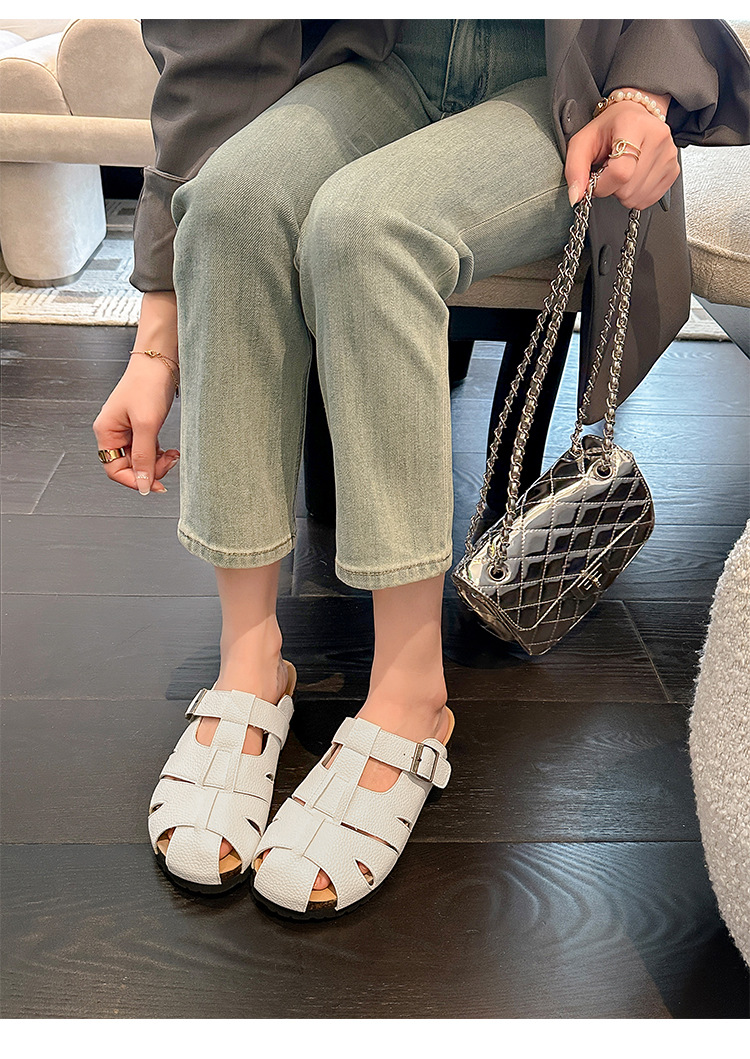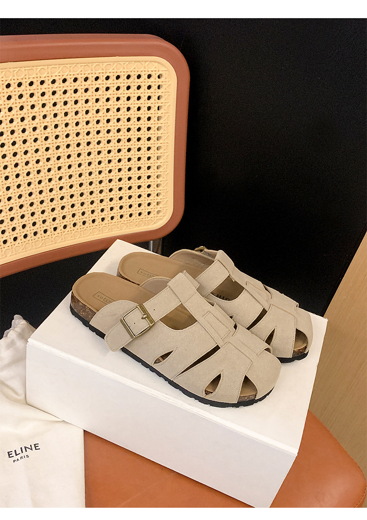 Grape Mom's 2025 새로운 여름 스타일 정품 가죽 중공 두꺼운 밑창 Baotou Birkenstock 슬리퍼 여성용 하프 슬리퍼 겉옷스토어 가기