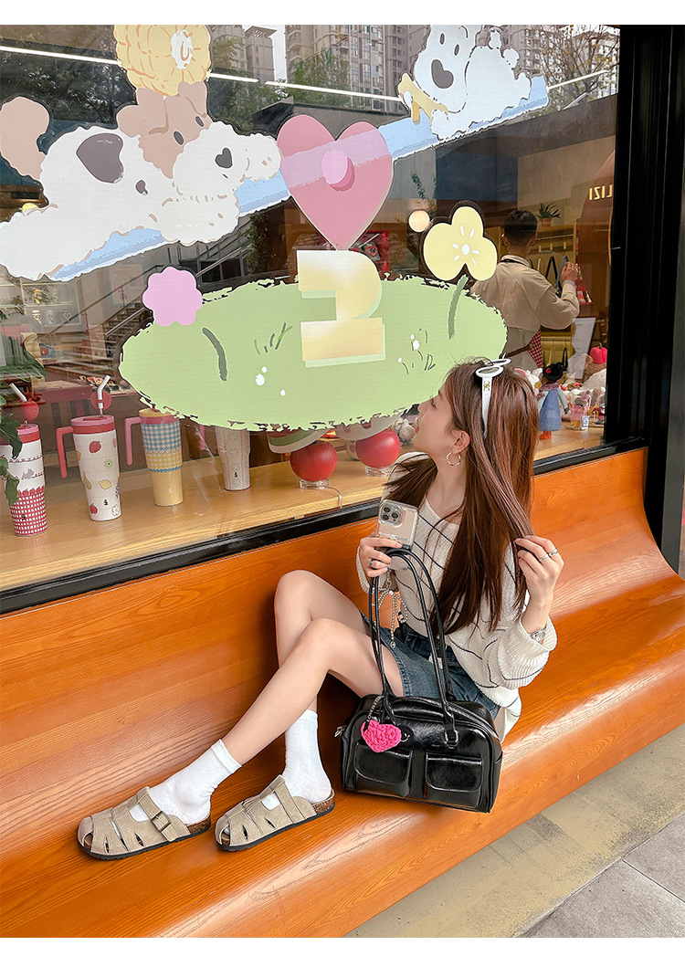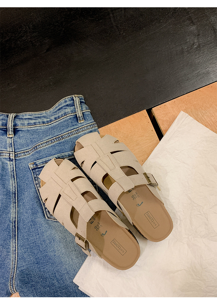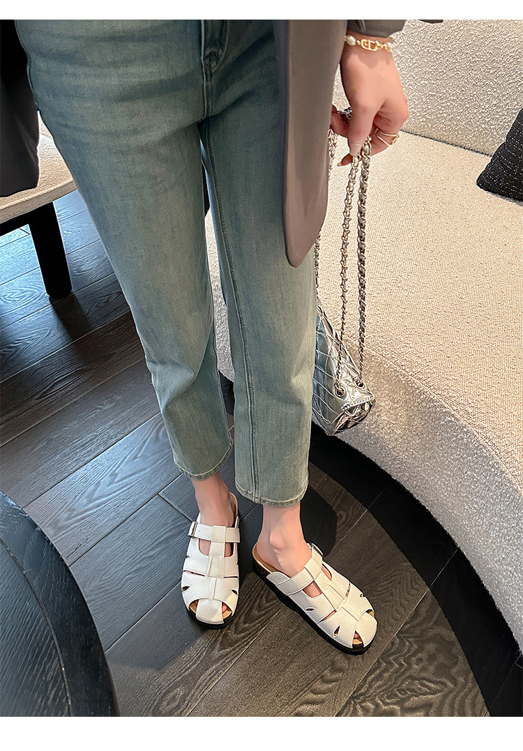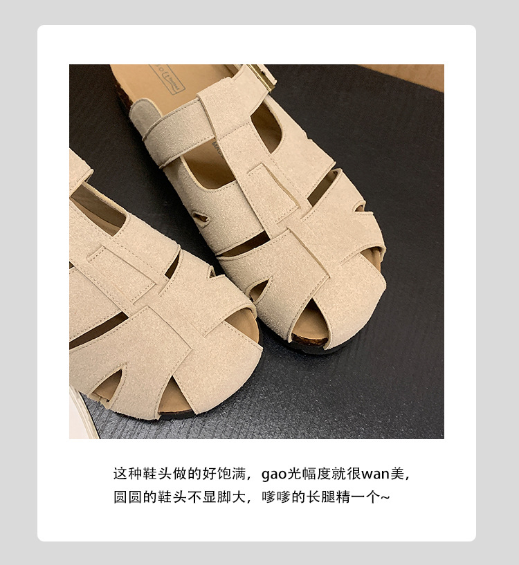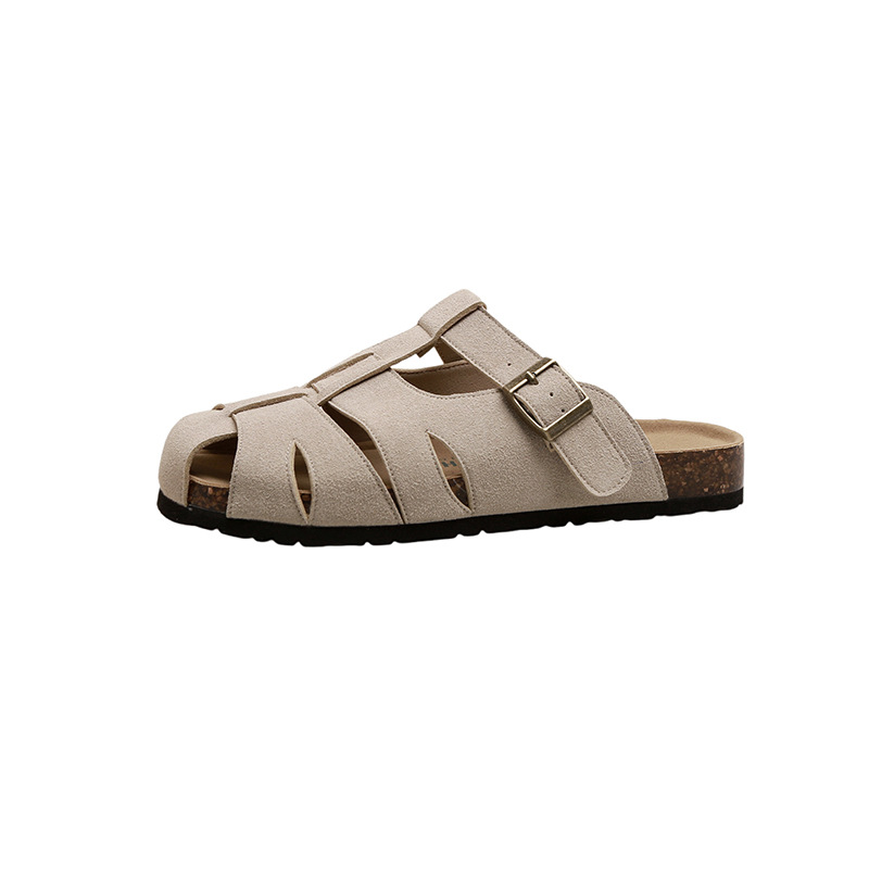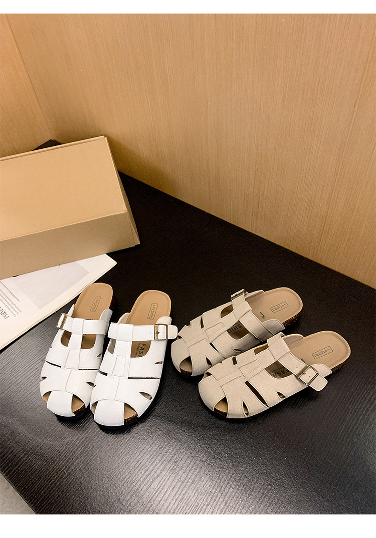 Grape Mom's 2025 새로운 여름 스타일 정품 가죽 중공 두꺼운 밑창 Baotou Birkenstock 슬리퍼 여성용 하프 슬리퍼 겉옷스토어 가기