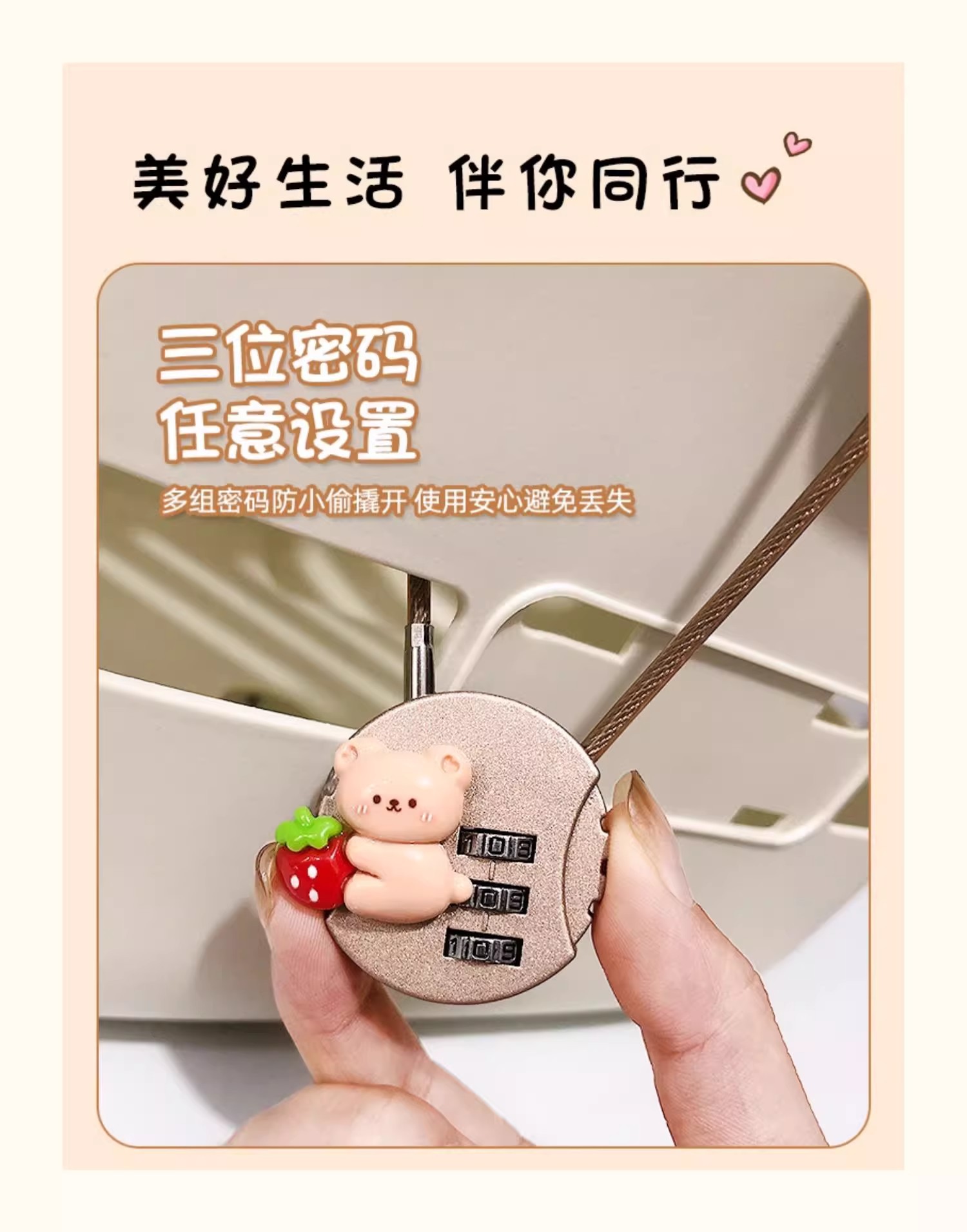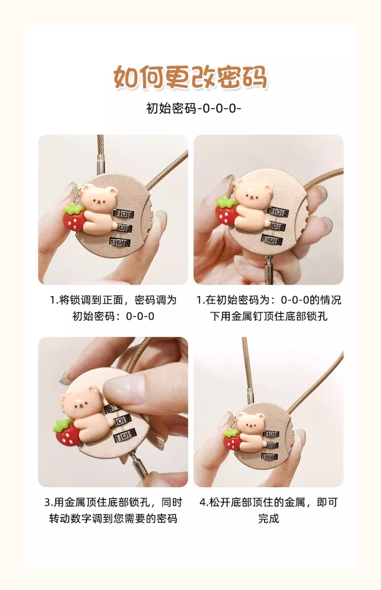 • 딸기곰 콤비네이션 자물쇠-브라운