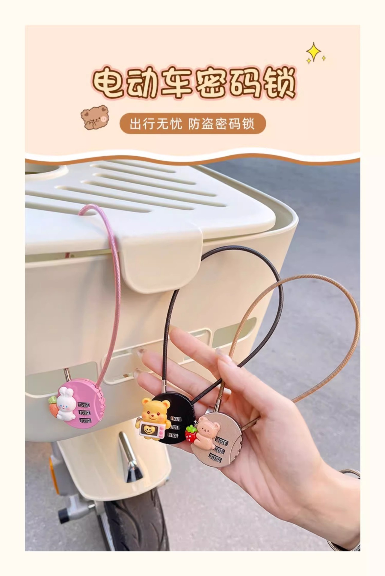 Emma Yadi 전기 자동차 바구니 잠금 장치에 적합 도난 방지 비밀번호 잠금 장치 도난 방지 귀여운 배터리 자동차 자전거 바구니 잠금 장치스토어 가기