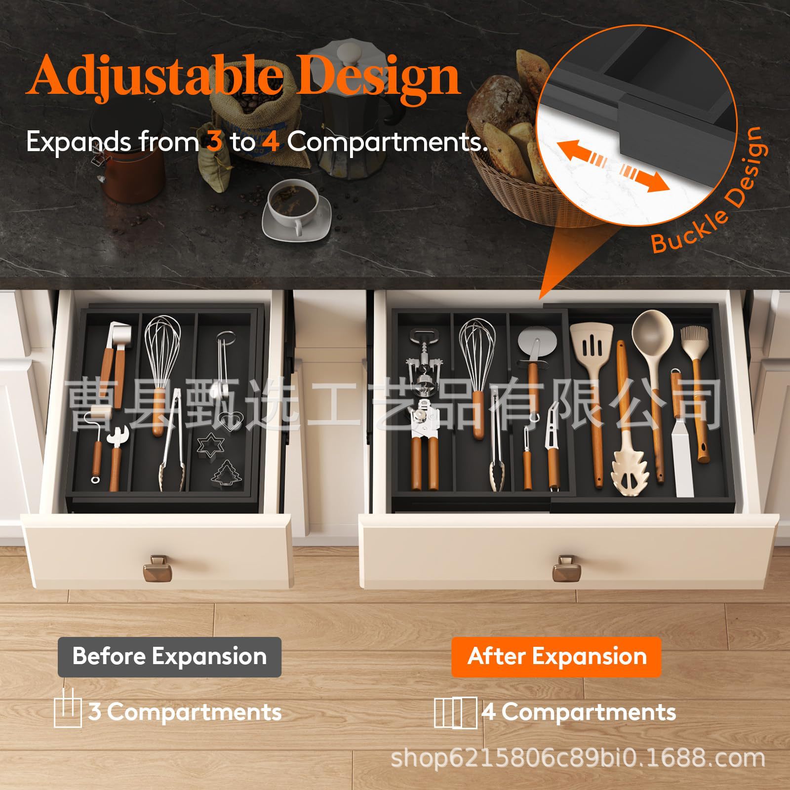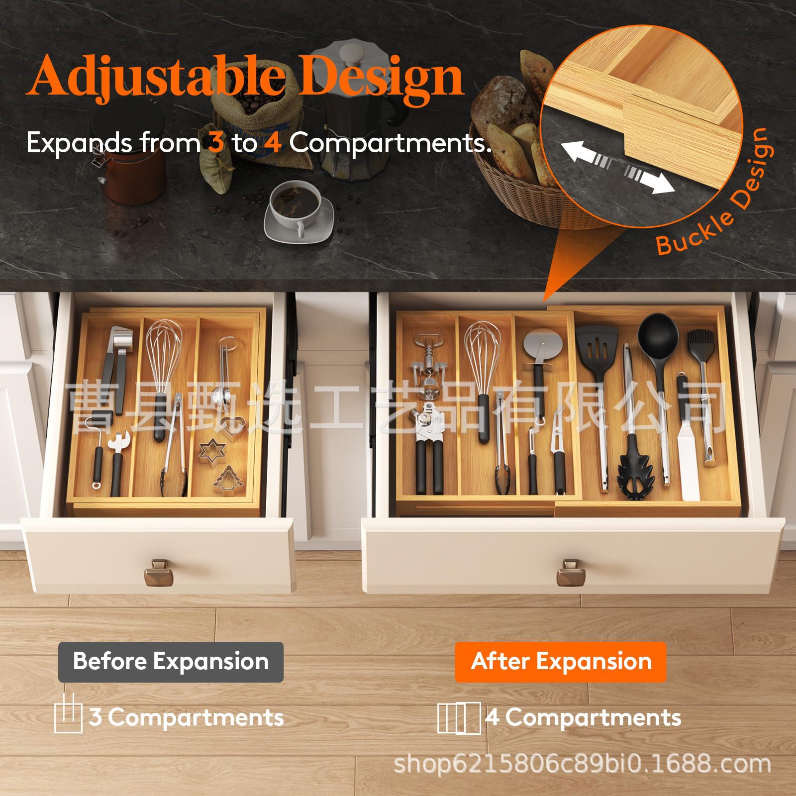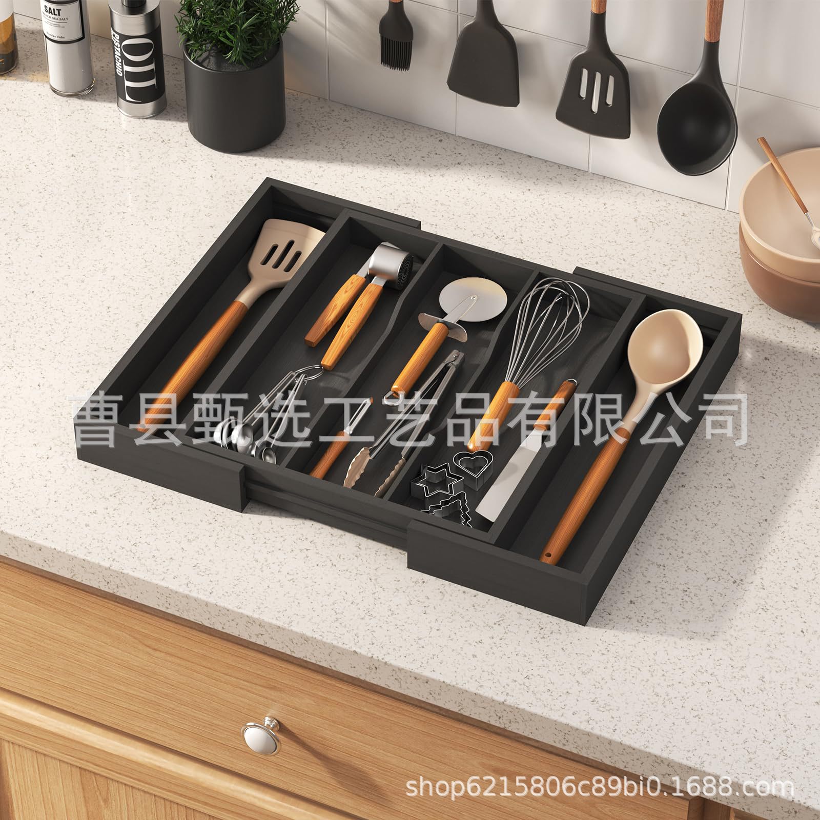 나무 접이식 데스크탑 서랍 보관함 주방 칼, 포크 및 식기 정리함 화장품 내장 칸막이 보관함스토어 가기
