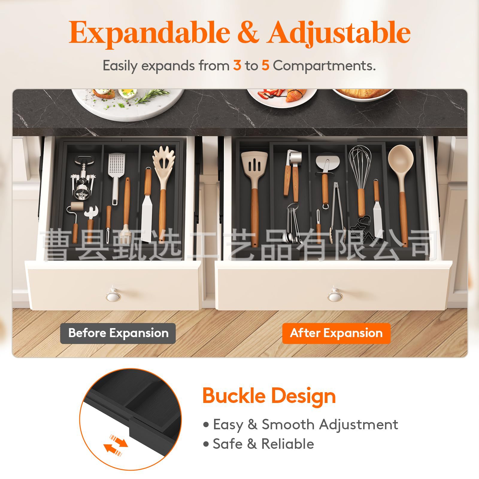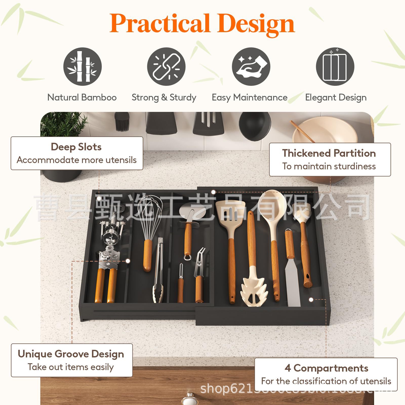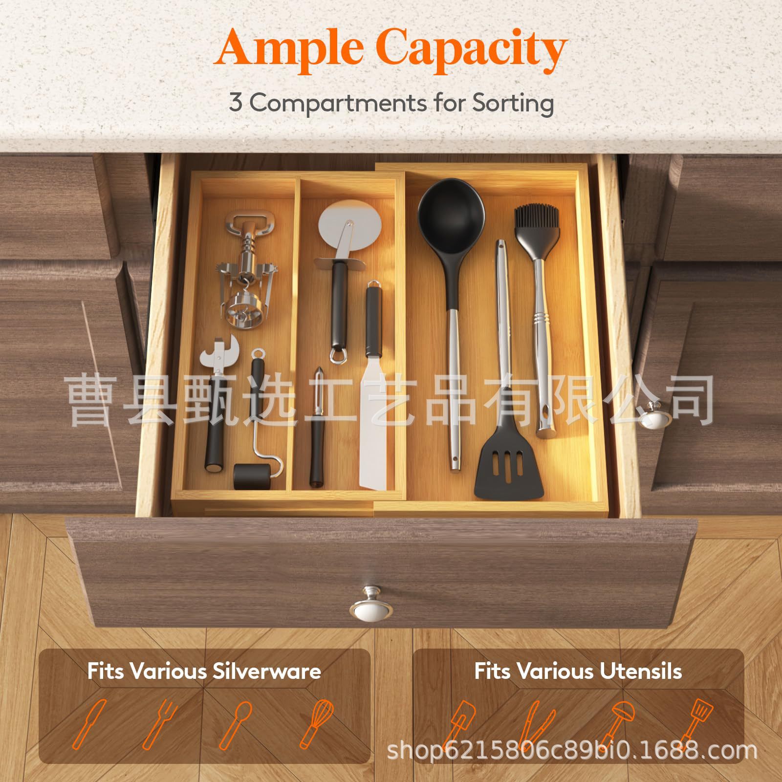 나무 접이식 데스크탑 서랍 보관함 주방 칼, 포크 및 식기 정리함 화장품 내장 칸막이 보관함
