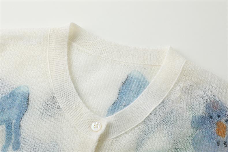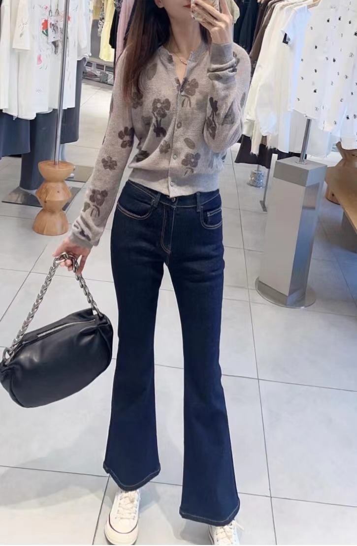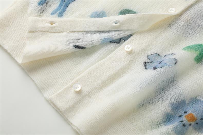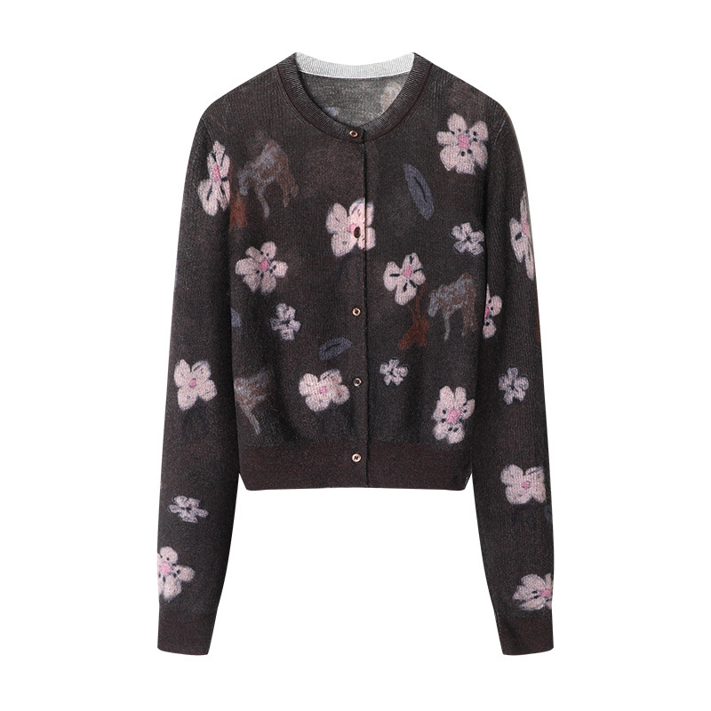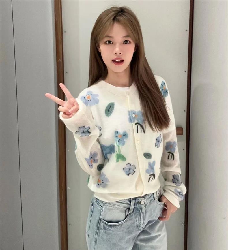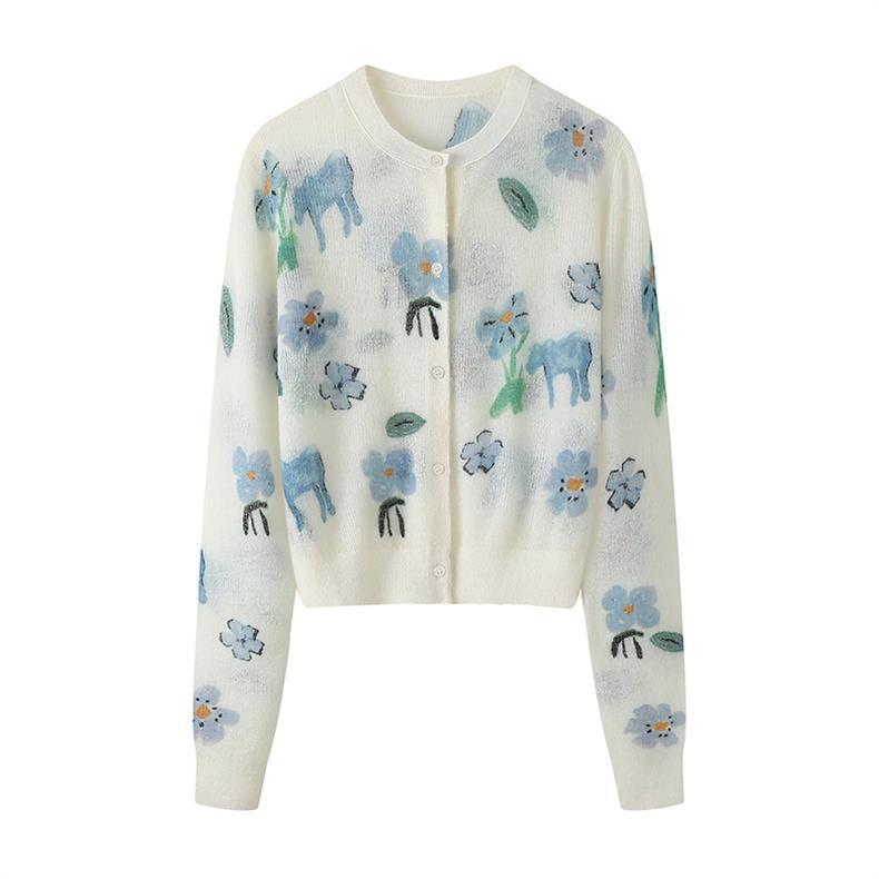 24 새로운 가을 스타일 부드럽고 왁시한 하이 엔드 꽃무늬 얇은 라운드 넥 긴팔 스웨터 여성 트렌드를 위한 틈새 게으른 스타일 카디건