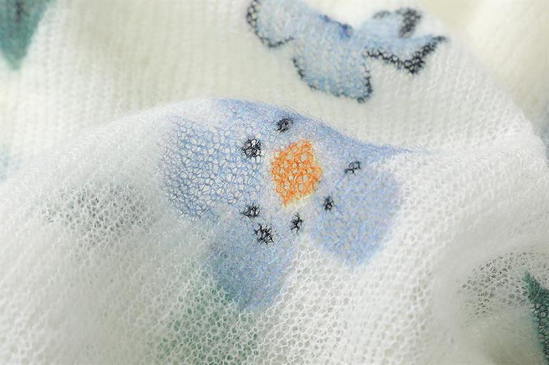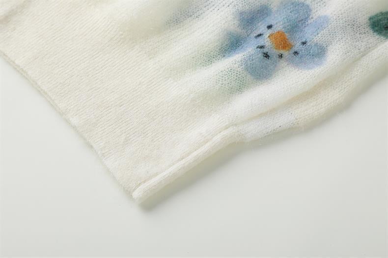 24 새로운 가을 스타일 부드럽고 왁시한 하이 엔드 꽃무늬 얇은 라운드 넥 긴팔 스웨터 여성 트렌드를 위한 틈새 게으른 스타일 카디건스토어 가기