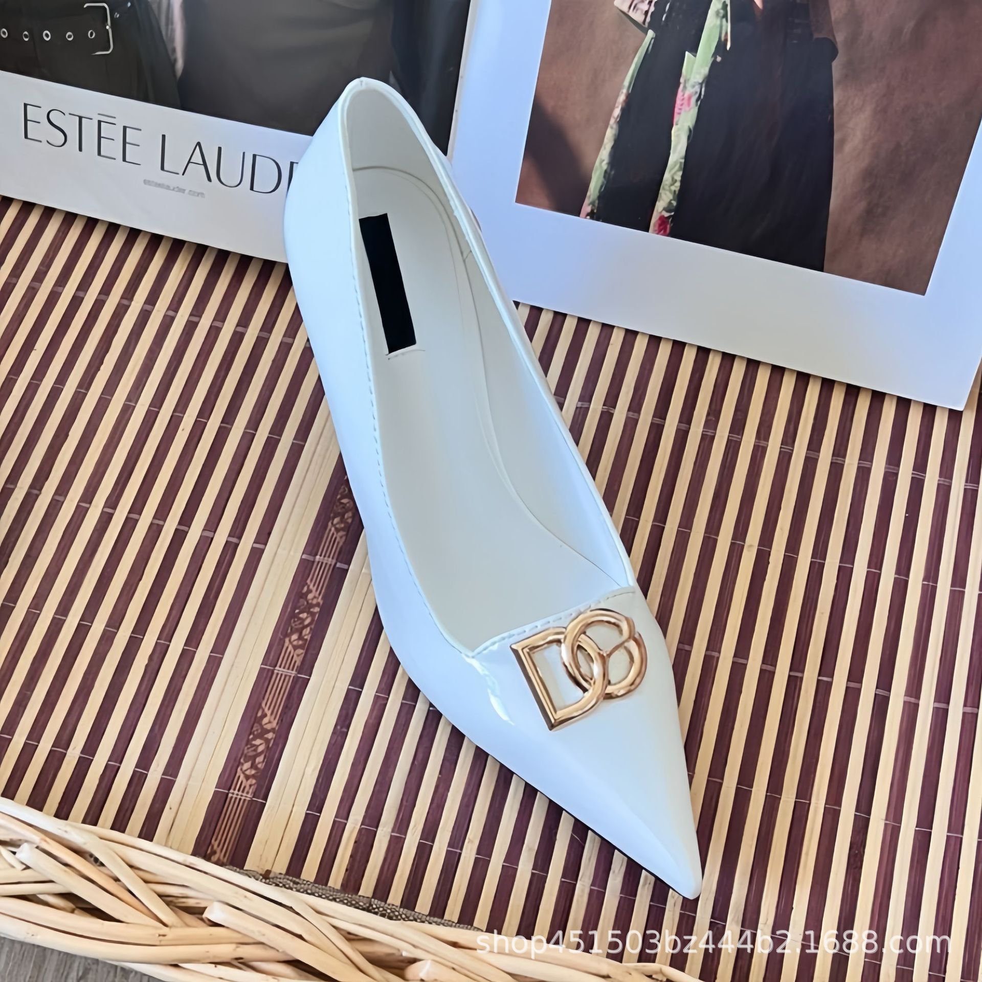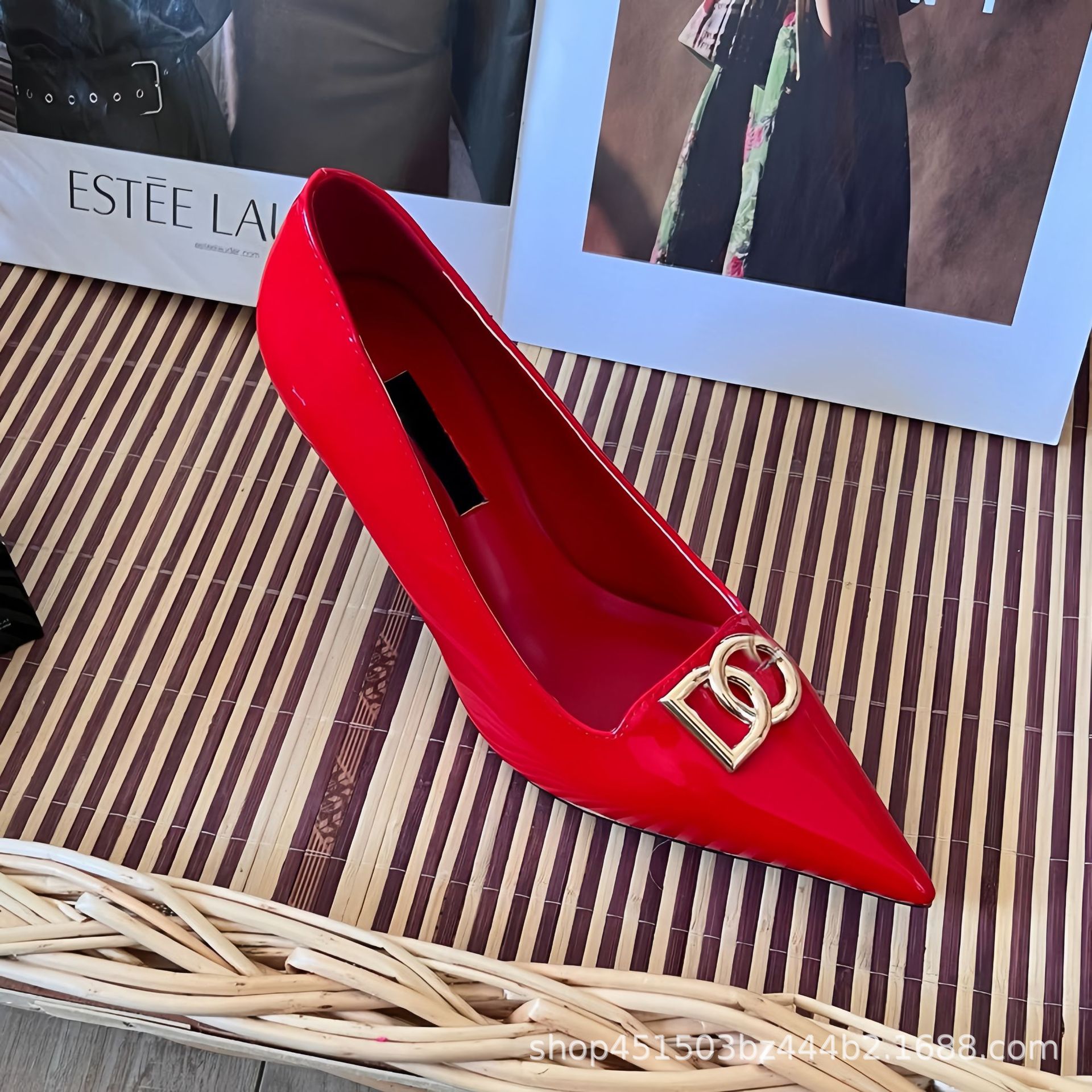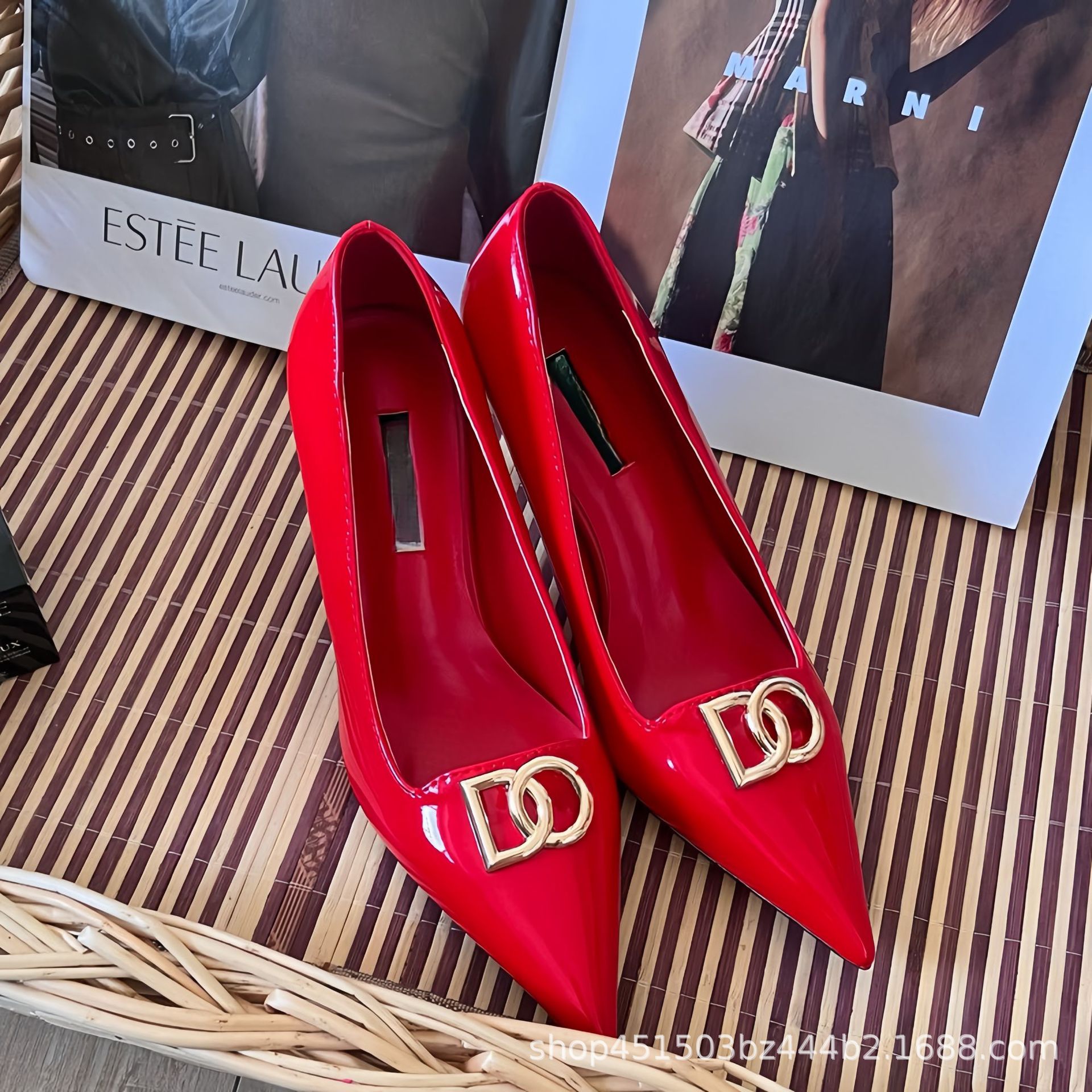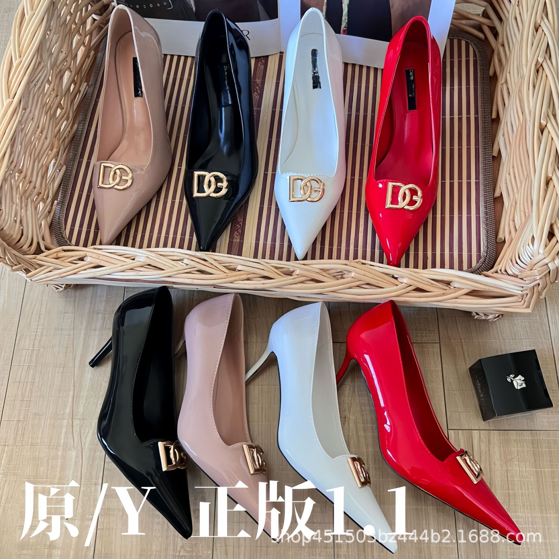2025 봄과 가을 새로운 캐주얼 패션 스틸레토 여성 신발 문자 버클 뾰족한 발가락 하이힐 대형 특허 가죽스토어 가기
