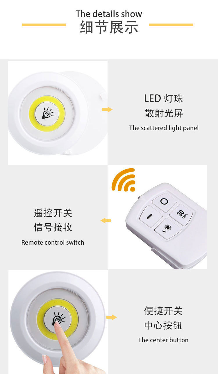 국경 창조적 인 COB 원격 제어 유도 가벼운 침실 옷장 캐비닛 조명 터치 야간 조명을 먹이는 가벼운 침대 옆스토어 가기