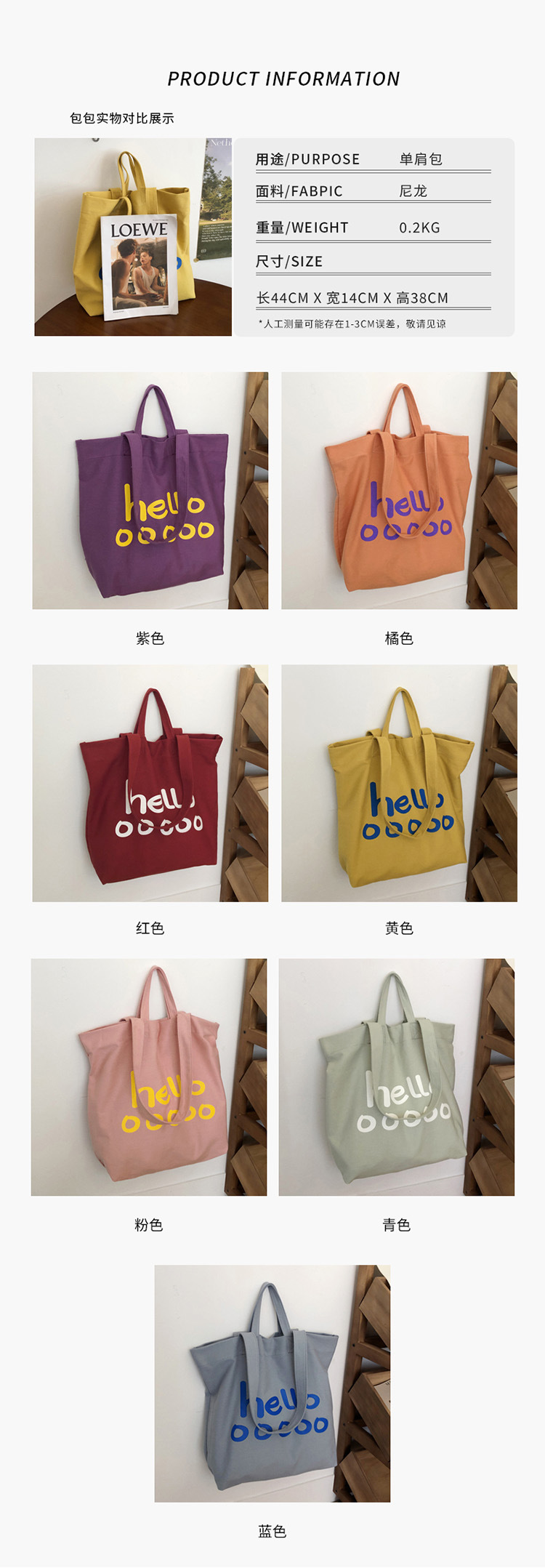 한국 신상 캔버스백, 대용량 숄더레터 토트백, 심플 캐주얼 트렌디백, 학생 쇼핑백 트렌드