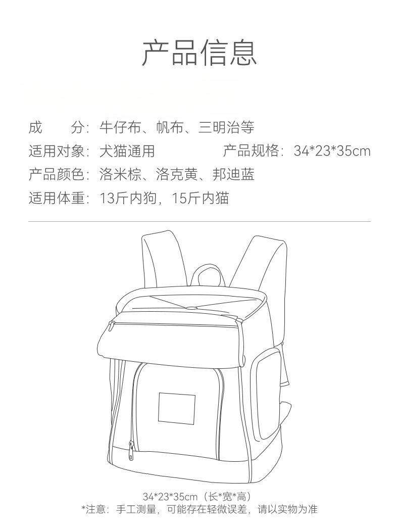 애완동물 외출가방, 대용량 고양이 및 강아지 휴대용 접이식 중소형견 가슴 앞뒤 크로스백 백팩스토어 가기